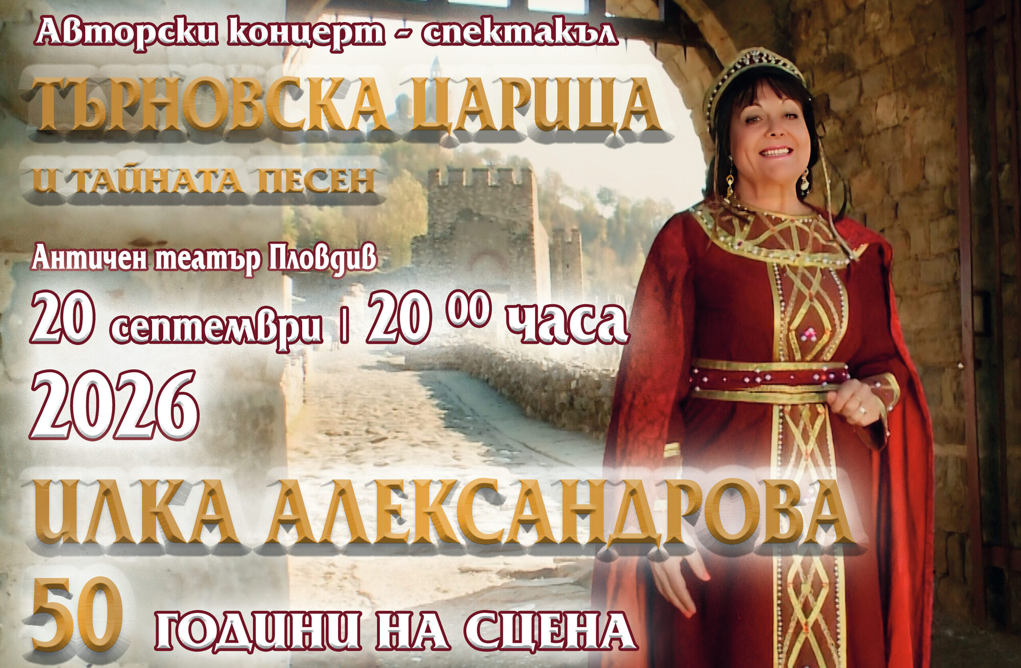50 години на сцена: Илка Александрова с юбилеен авторски концерт-спектакъл: "Търновска царица и тайната песен" на 20 Септември, в Античен театър - Пловдив