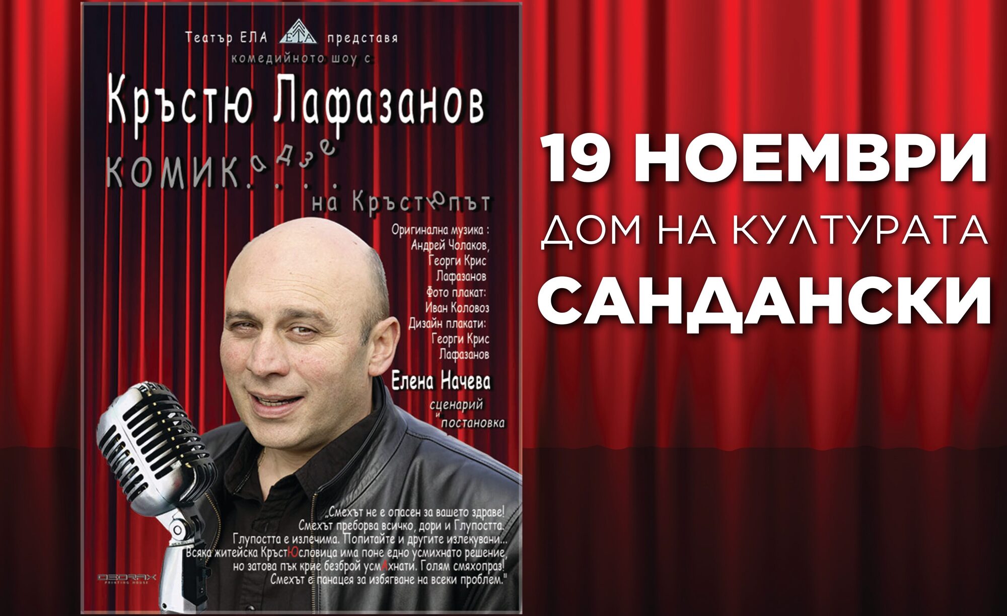 Кръстю Лафазанов в спектакъла "КОМИКадзе на КРЪСТЮпът" - на 19 Ноември, в Дом на културата, Сандански