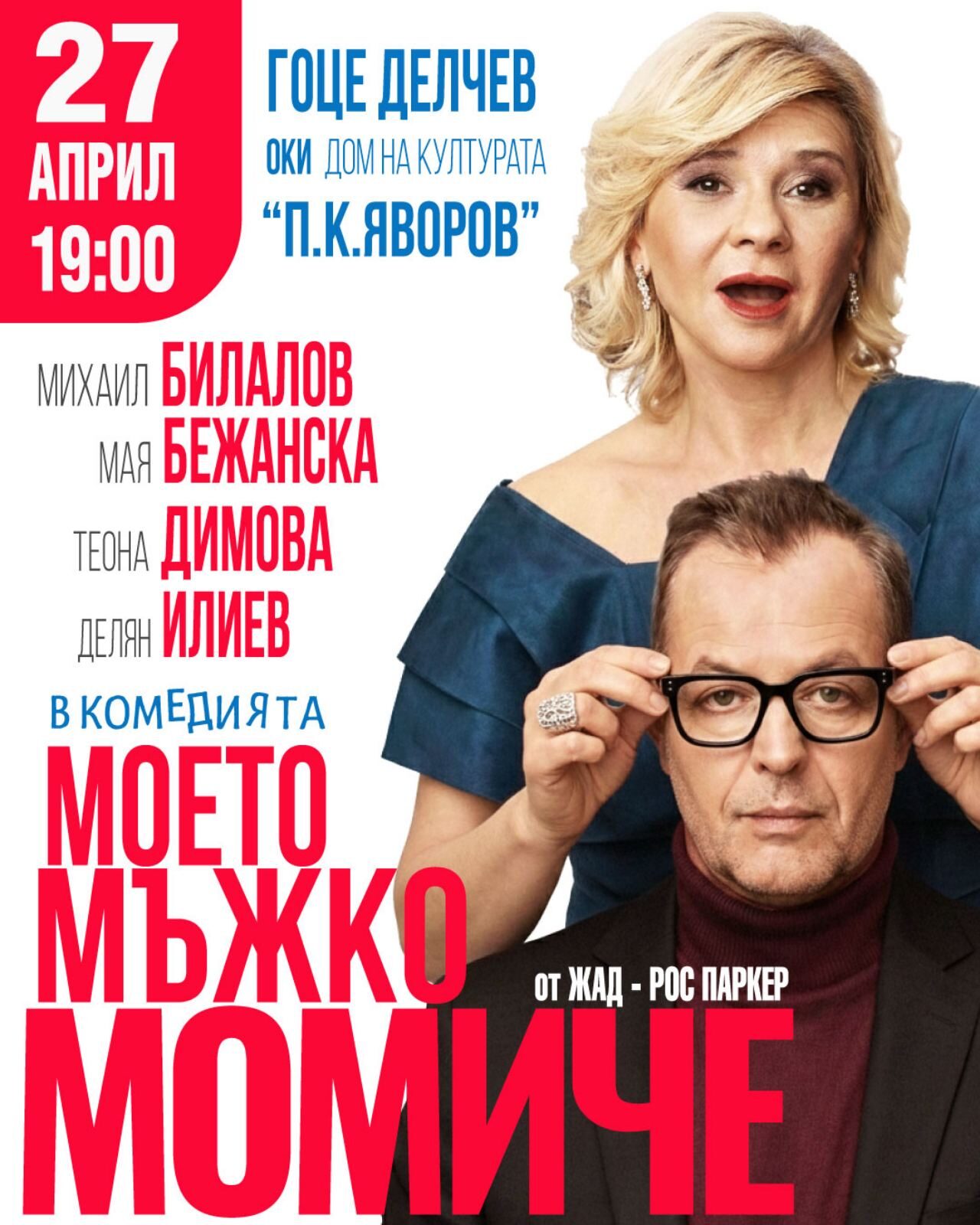 Комедията "Моето мъжко момиче", с участието на Михаил Билалов и Мая Бежанска - на 27 Април, в Дом на културата "Пейо Яворов" - Гоце Делчев