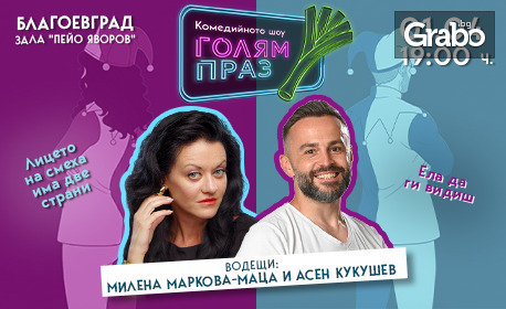 Забавлявайте се с шоуто "Голям праз" с водещи Маца и Асен Кукушев на 1 Април в зала "Пейо Яворов" - Благоевград