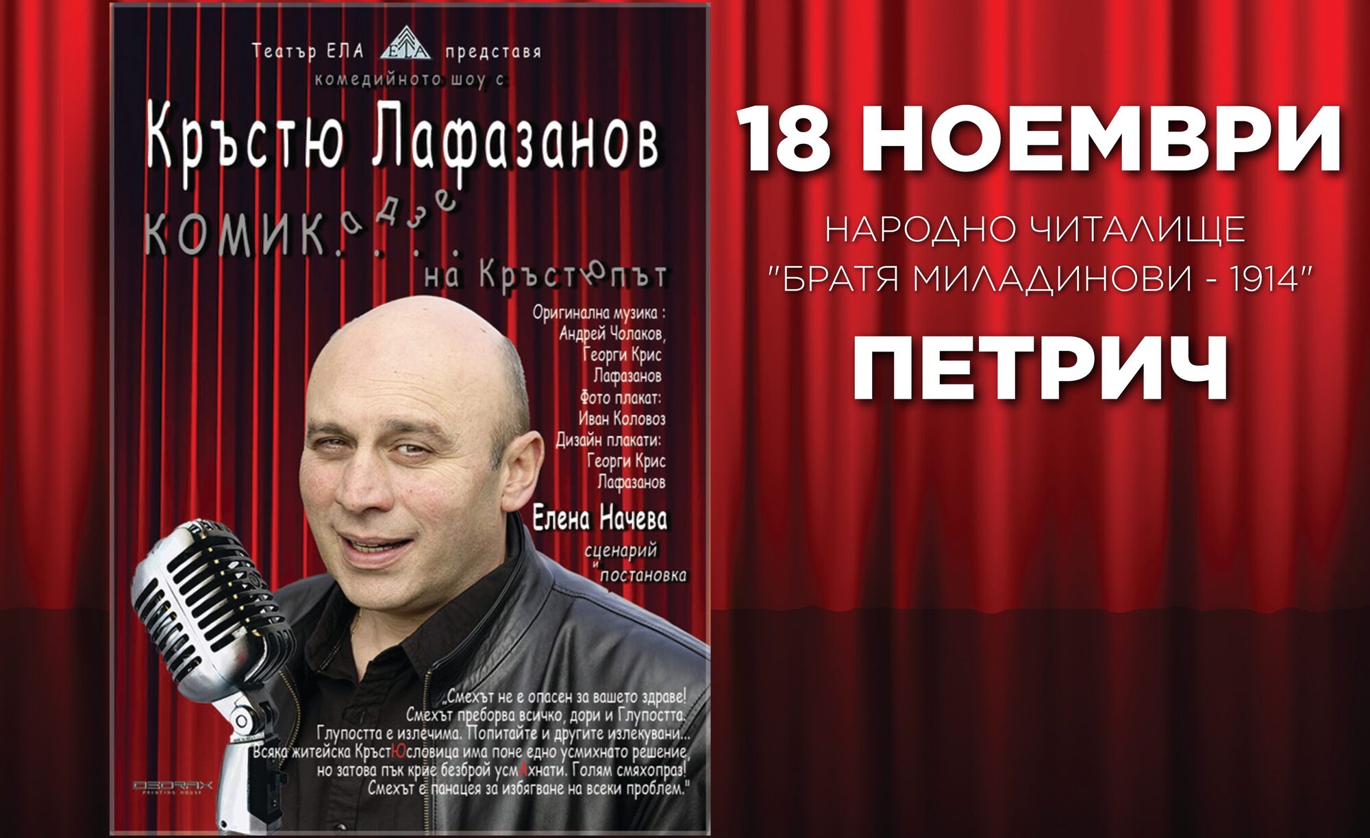 Кръстю Лафазанов в спектакъла "КОМИКадзе на КРЪСТЮпът" - на 19 Ноември, в Дом на културата, Сандански