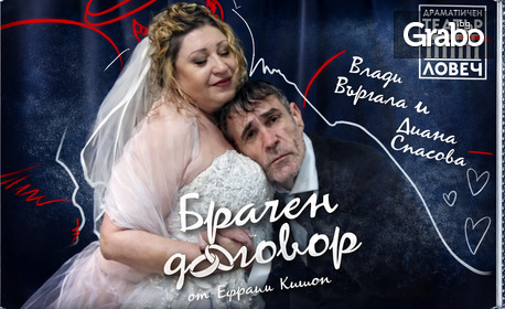 Влади Въргала и Диана Спасова в щурата комедия "Брачен договор" на 25 Март, в Читалище "Славейков", Варна