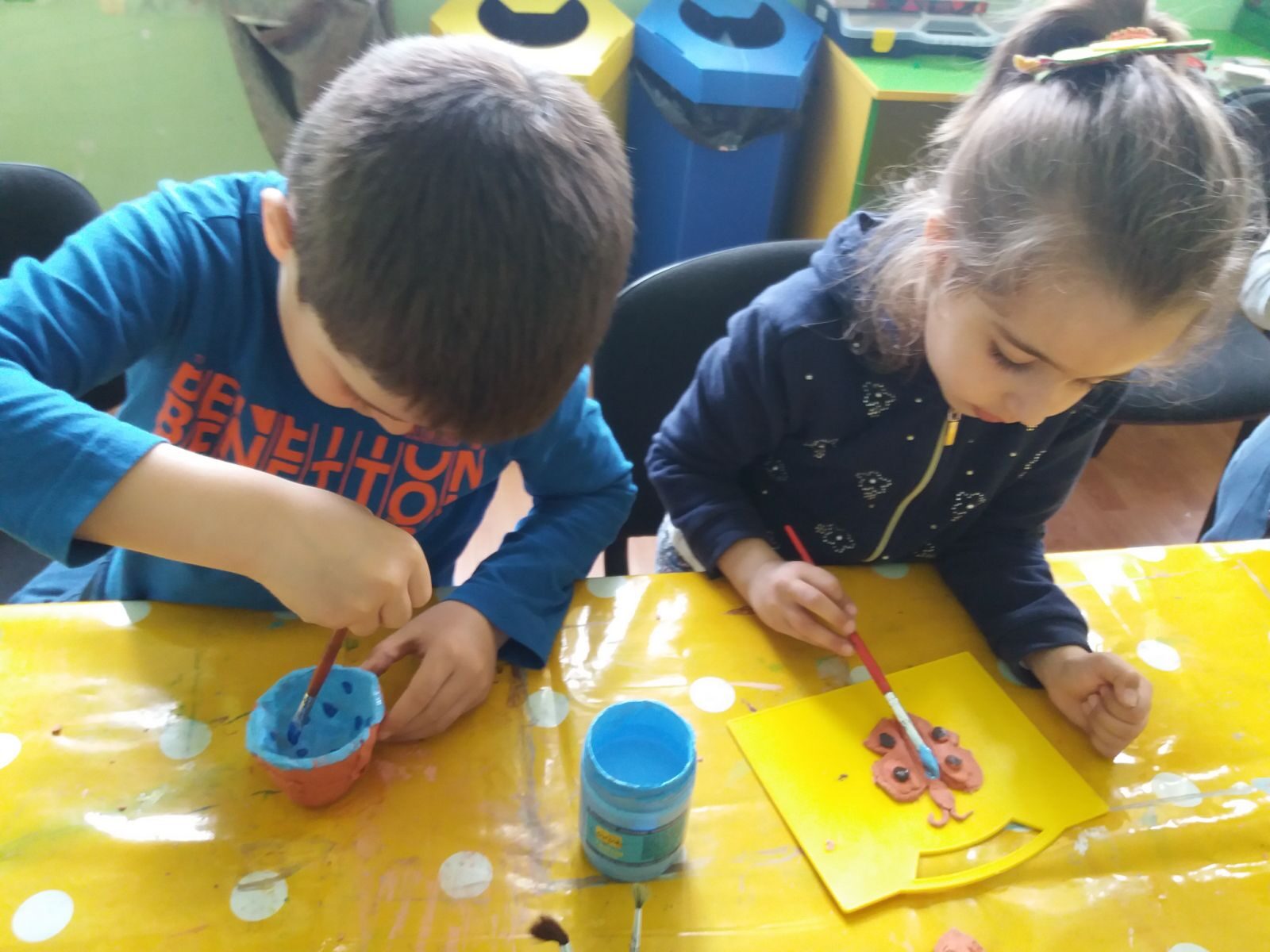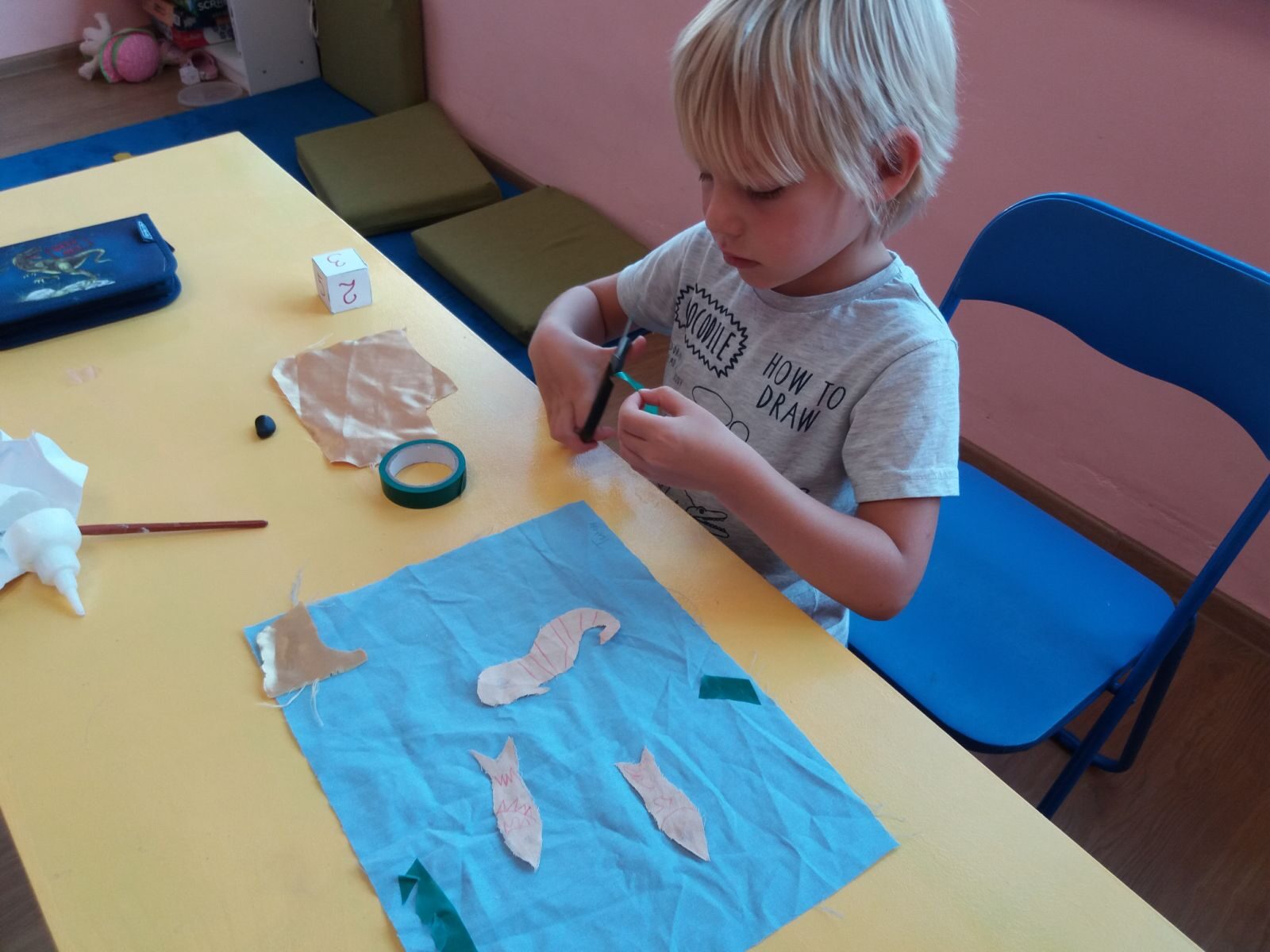 • лепило, ножици, боички, глина;
