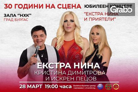 Юбилеен концерт на Екстра Нина и приятели на 28 Март, в Културен дом НХК - Бургас