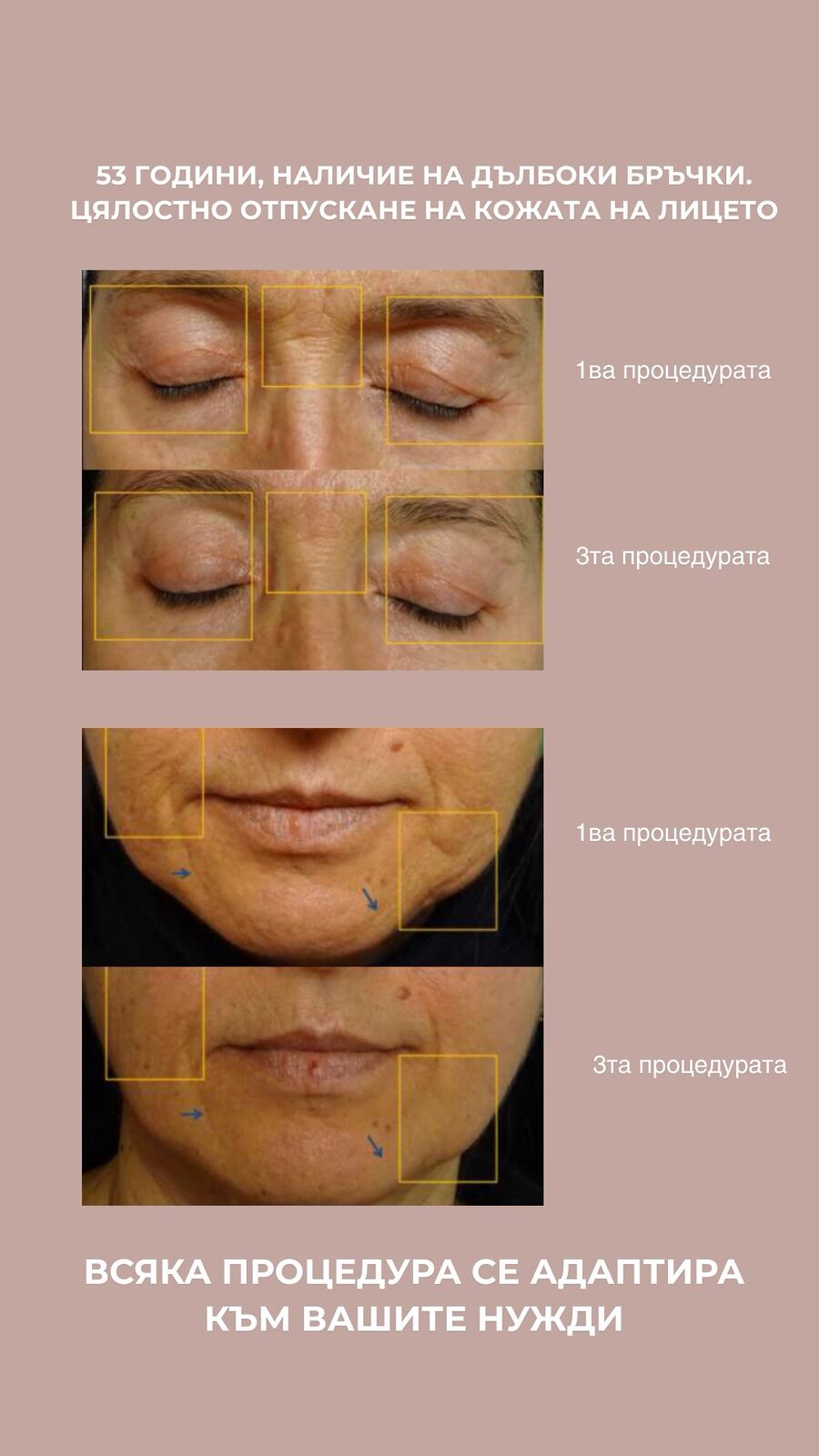 Процедурата стимулира производството на колаген и еластин, което прави кожата по-стегната и еластична.