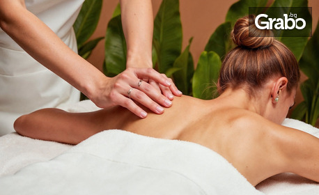 | На гръб, врат, глава, лице и ръце (40 минути) | 12.90 €/25.23 лв вместо 25.00 €/48.90 лв | Грабни |