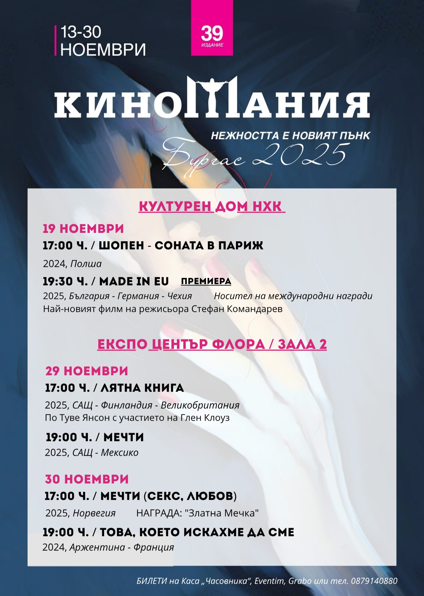 Премиерно в Бургас! Като част от избраната колекция на Киномания 2025. Най-новият филм на режисьора Стефан Командарев ":Made in EU" ще има своята среща с българската публика през ноември. Първо ще от.. Още...