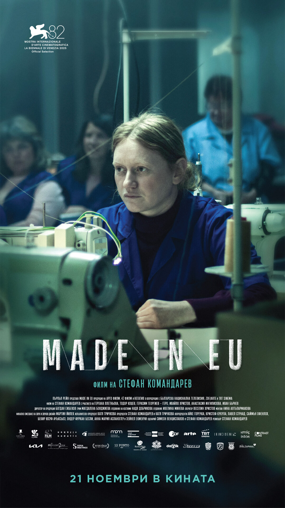 Премиерно в Бургас! Като част от избраната колекция на Киномания 2025. Най-новият филм на режисьора Стефан Командарев ":Made in EU" ще има своята среща с българската публика през ноември. Първо ще открие 39-тото издание на "Киномания" на 13 Ноември от 19:00 часа в зала 1 на НДК, а на 19 Ноември ще бъде показан в Бургас!