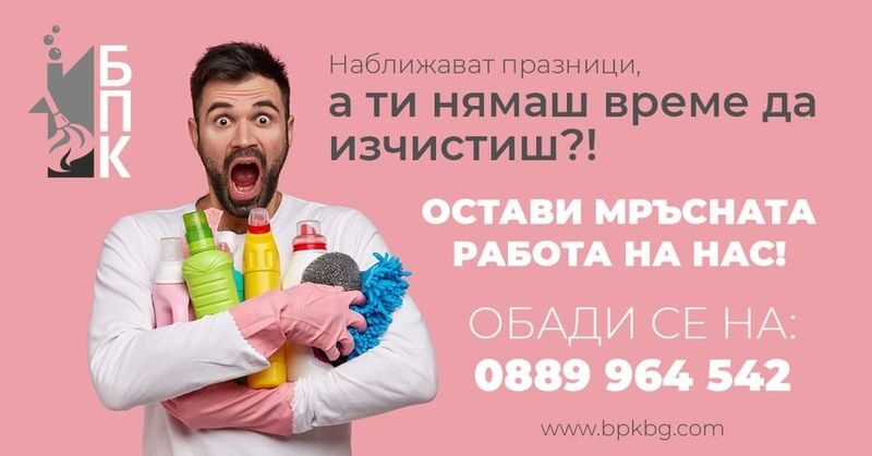 Българска почистваща компания е фирма за почистване с основна насоченост към бизнеса и наемодателите. Компанията предлага почистване на офиси по абонаментен план в Бургас, Несебър, Поморие, Созопол, к.к. Слънчев бряг, Ахтопол, Черноморец и в повечето населени места от област Бургас.
