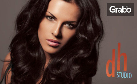 Оформяне на прическа, подстригване, възстановяваща терапия по избор или боядисване с Just color, от Студио Dh hair style