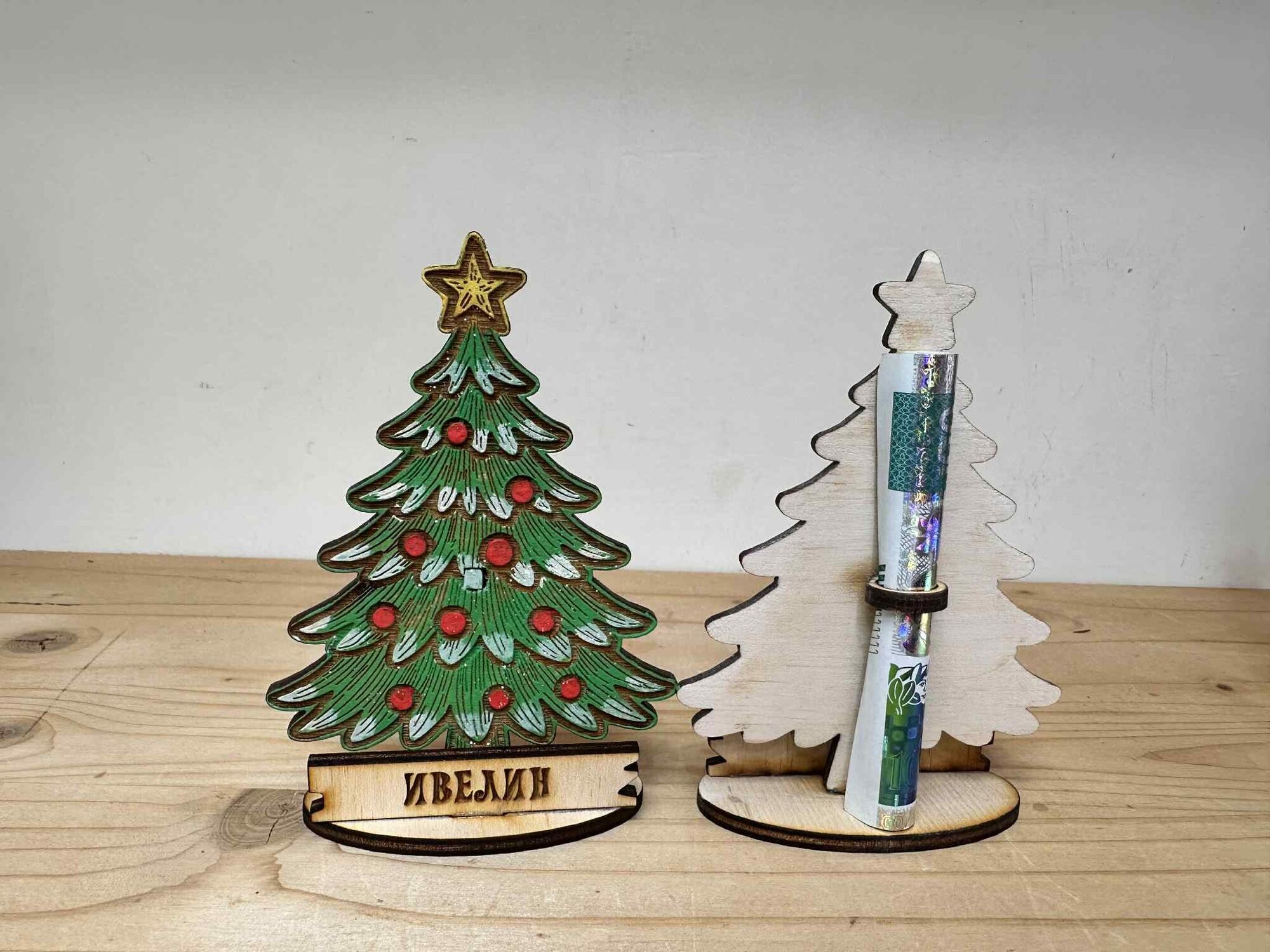 Дървените елхички на Фроида не са просто декорации - те са вълшебен начин да поднесеш подарък с душа. Изработени с внимание от фино брезово дърво, те съчетават уюта на ръчна изработка с коледния дух, който стопля сърцето. Всяка елхичка носи частица от празничното чудо. С тези мини шедьоври всяка банкнота се превръща в празнично послание, изписано с любов.