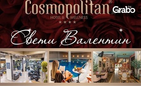 Ден на влюбените с романтично SPA бягство: Нощувка със закуска и празнична вечеря за двама, плюс бонус - бутилка вино и сладки изкушения, от Хотел Cosmopolitan Wellness & SPA****, Русе