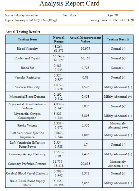 - Резултатите от теста се предоставят на клиента на Flash памет или се изпращат на E-mail.