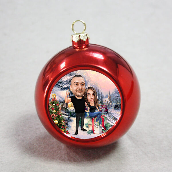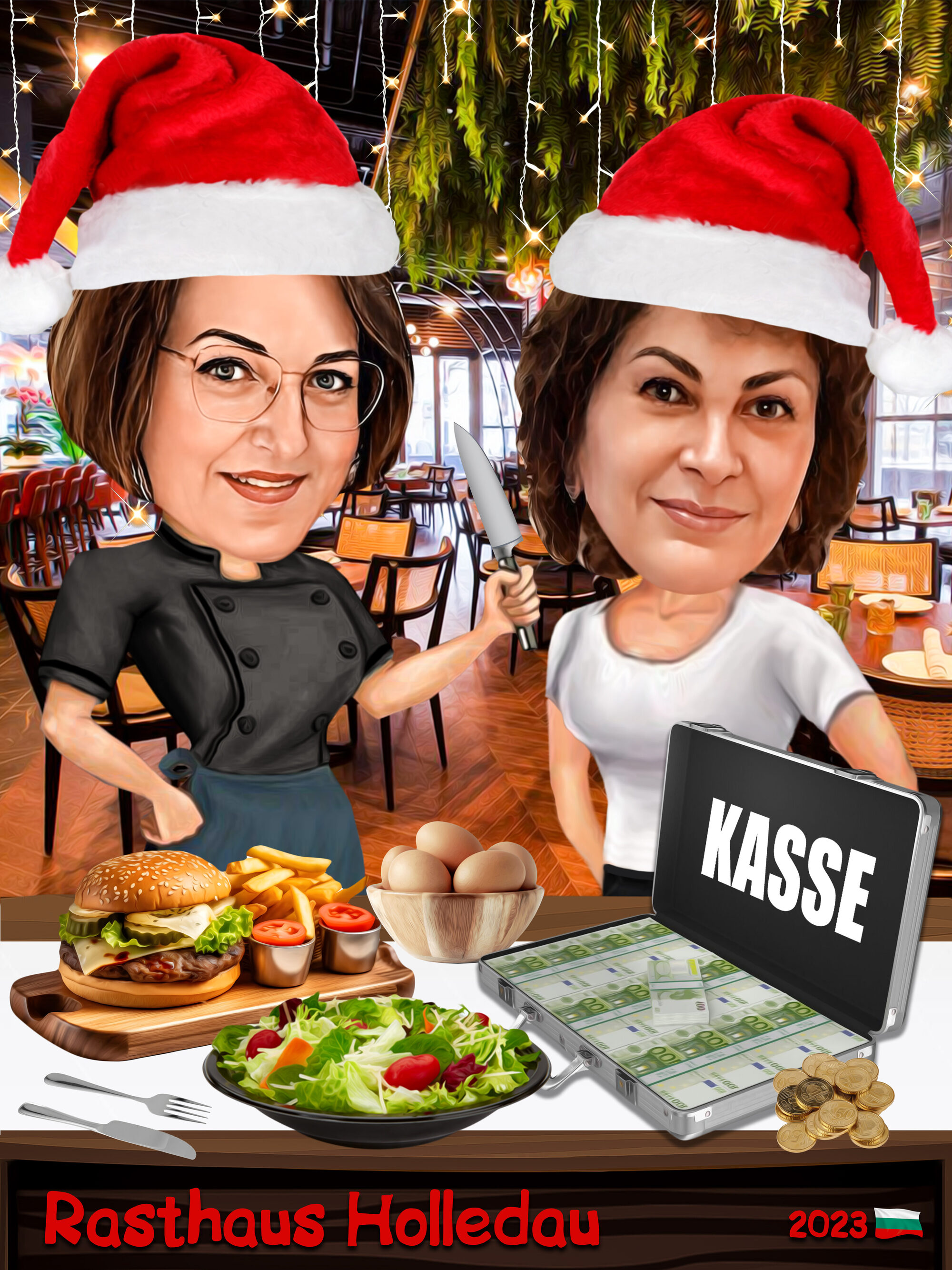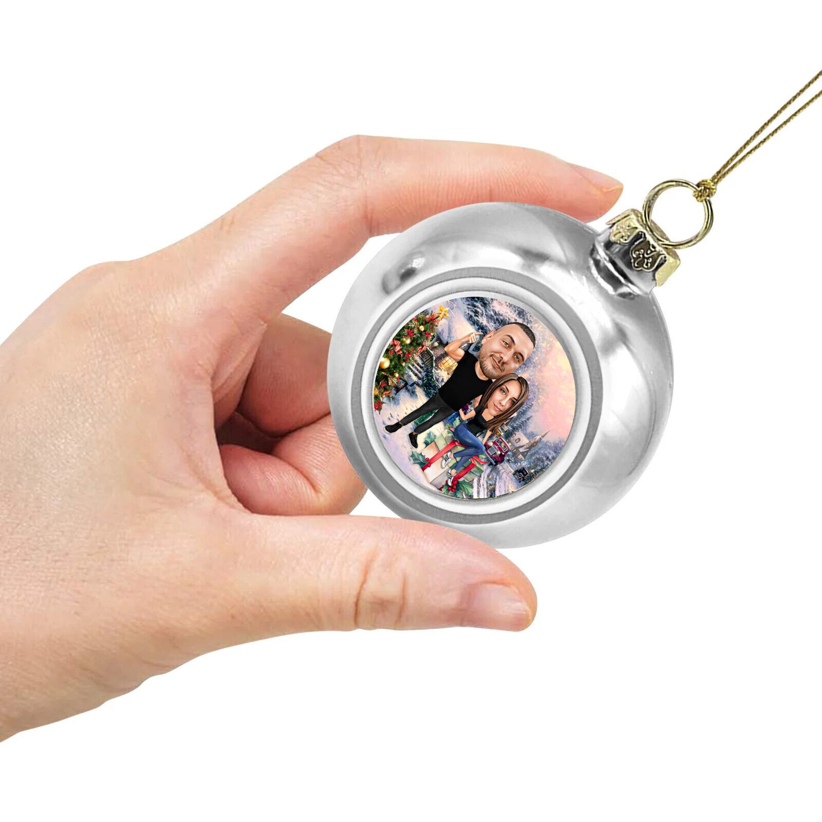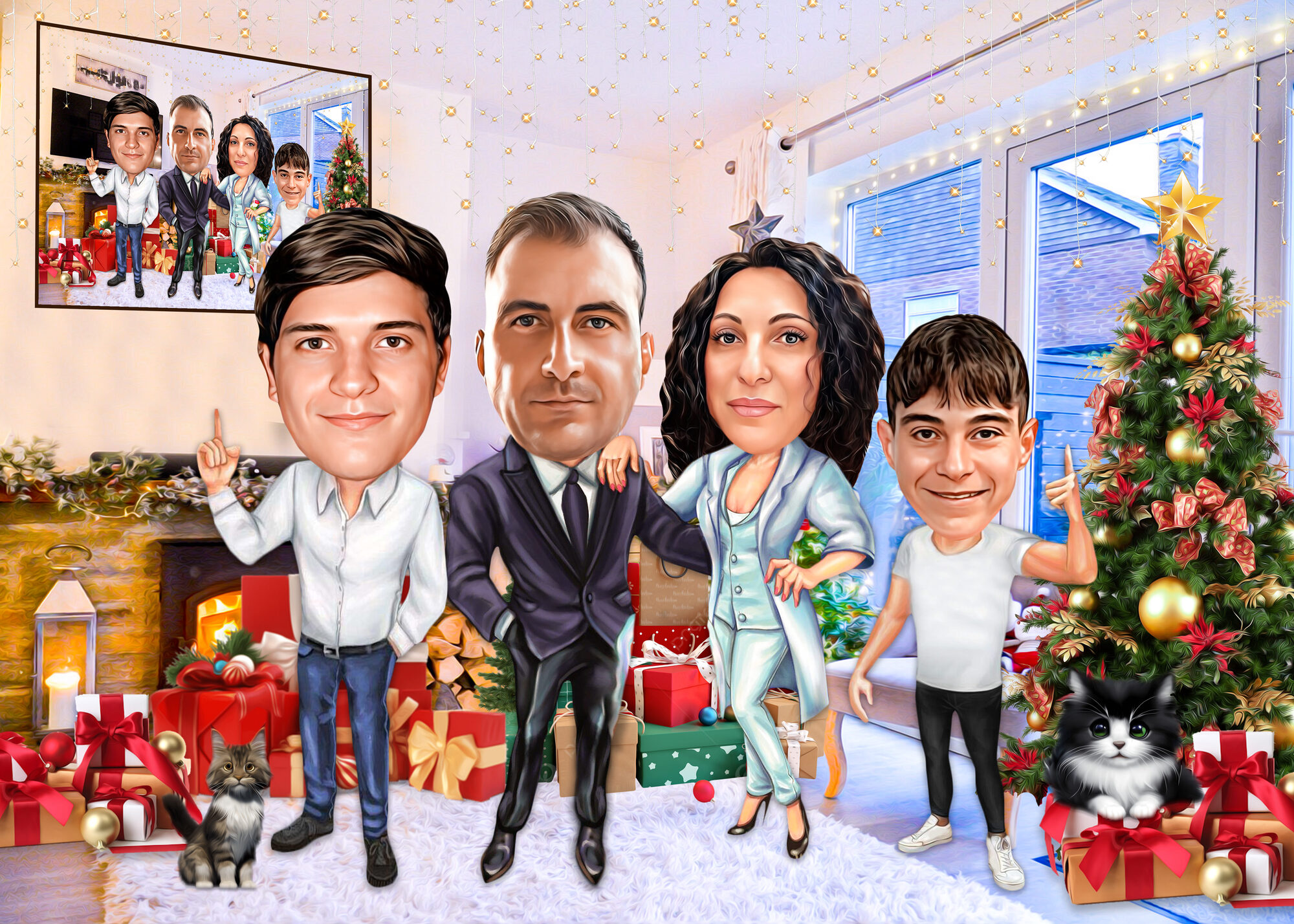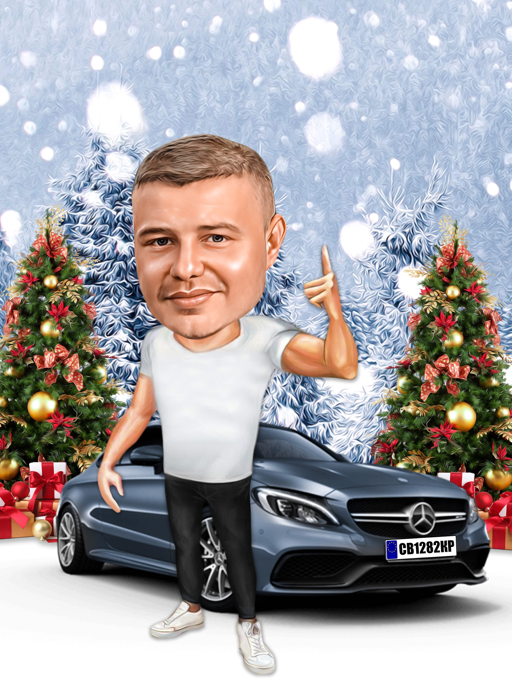Коледна дигитална карикатура с до 3 лица, плюс магнит или коледна топка с готовата карикатура, от Stela Caricatures