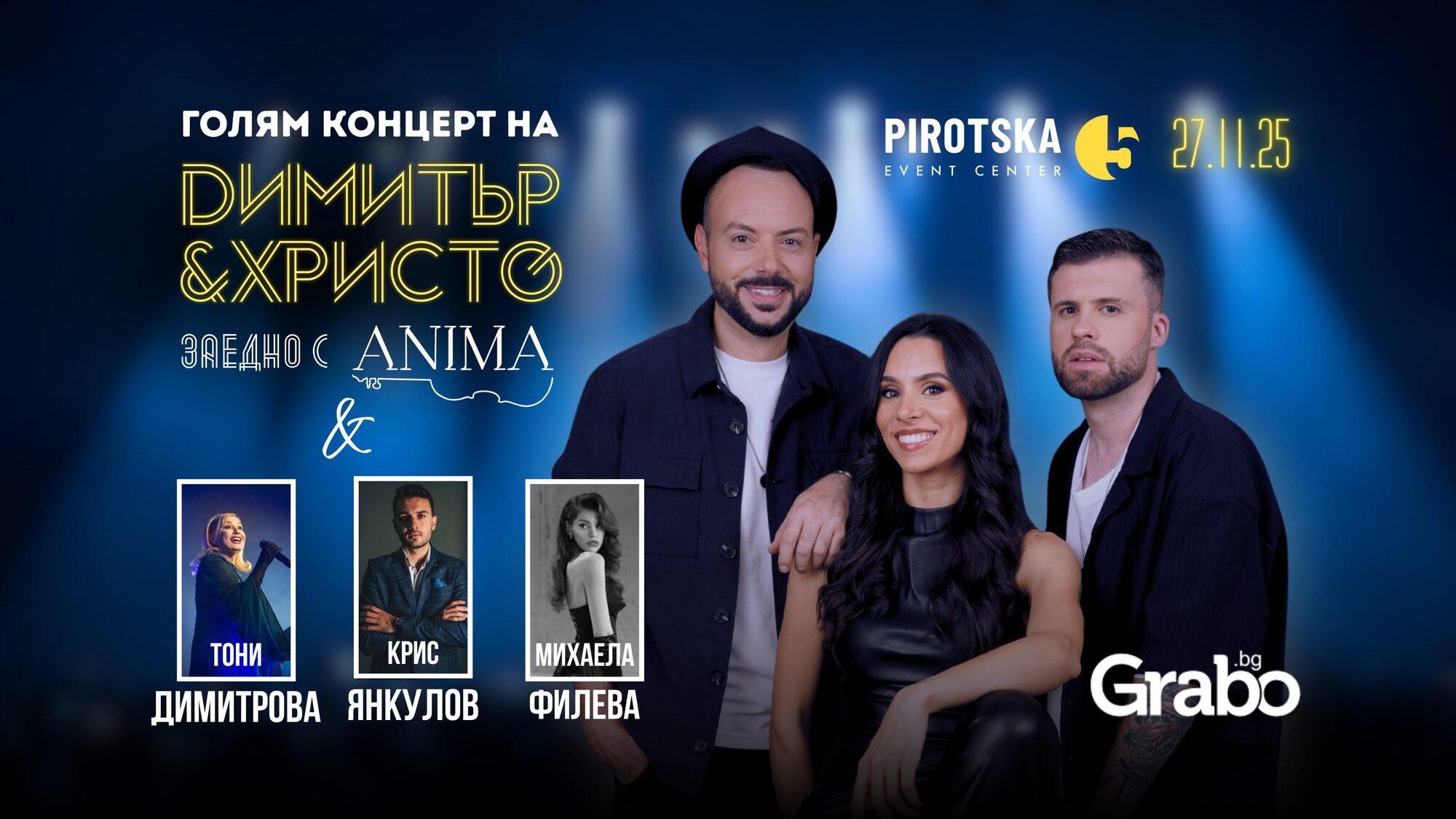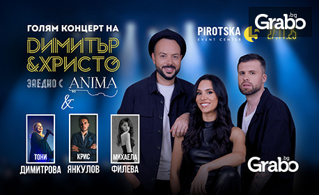 Големият концерт на Димитър & Христо заедно с ANIMA, Михаела Филева, Тони Димитрова, Крис Янкулов и още: 27 Ноември, в Pirotska 5 Event Center