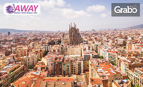 Отпътуване от летище София с полет София - Барселона. Посрещане от представител на фирмата организатор. Трансфер и панорамна обиколка на Барселона: площад "Испания" с "танцуващите фонтани", Арена де Торос (днес търговски център), хълмът Монджуик с паркове, галерии и развлекателни зони, архитектурният музей-резерват "Побле Еспаньол", Националният дворец, Олимпийският пръстен, Градският парк с Парламента и Зоологическата градина, Триумфалната арка, площад "Колумб", булевардът с "Каса Байо" и "Каса Педрера", крайбрежният булевард и зоната Маремагнум, митницата и статуята на Христофор Колумб, Олимпийското градче, площад "Каталуния". Пешеходна програма: църквата "Саграда Фамилия" - шедьовърът на Гауди. Свободно време за снимки.