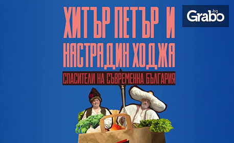 Спектакълът "Хитър Петър и Настрадин Ходжа, спасители на съвременна България" на 13 Ноември от 19:00ч, на Камерна зала на Драматичен театър "Йордан Йовков" - Добрич | 18.00 лв/9.20 € | Грабни |