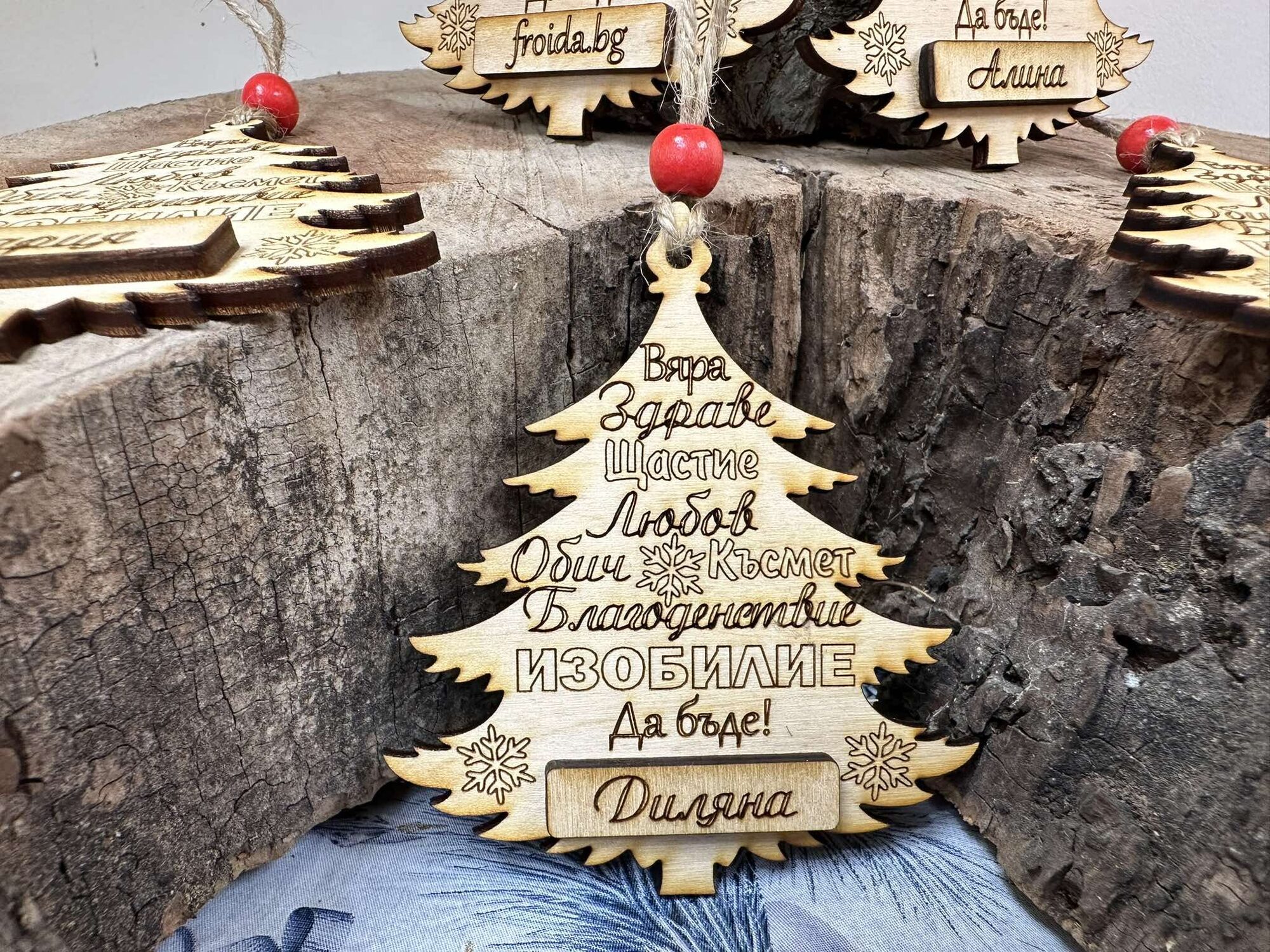 Персонализиран коледен подарък, изработен от дърво - елхичка, от Фроида