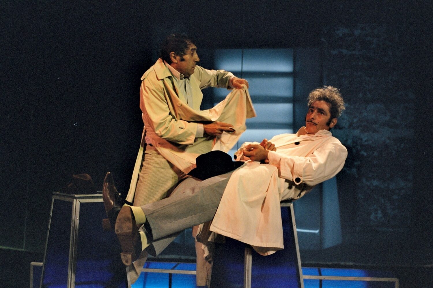 Валентин Танев и Христо Гърбов накараха залата да вие от смях. Те играят аутсайдери, които вегетират в живота, но живеят истински само на мачове. Режисьорката Иглика Трифонова е отприщила необятните им комедийни способности. Те приличат на митичните персонажи на Бекет, но вече в модерен вариант - не се чувстват изхвърлени от живота, а гледат да се приспособят. Каквито и несгоди да се срутват върху тях, те бягат в обетованата земя - футбола.