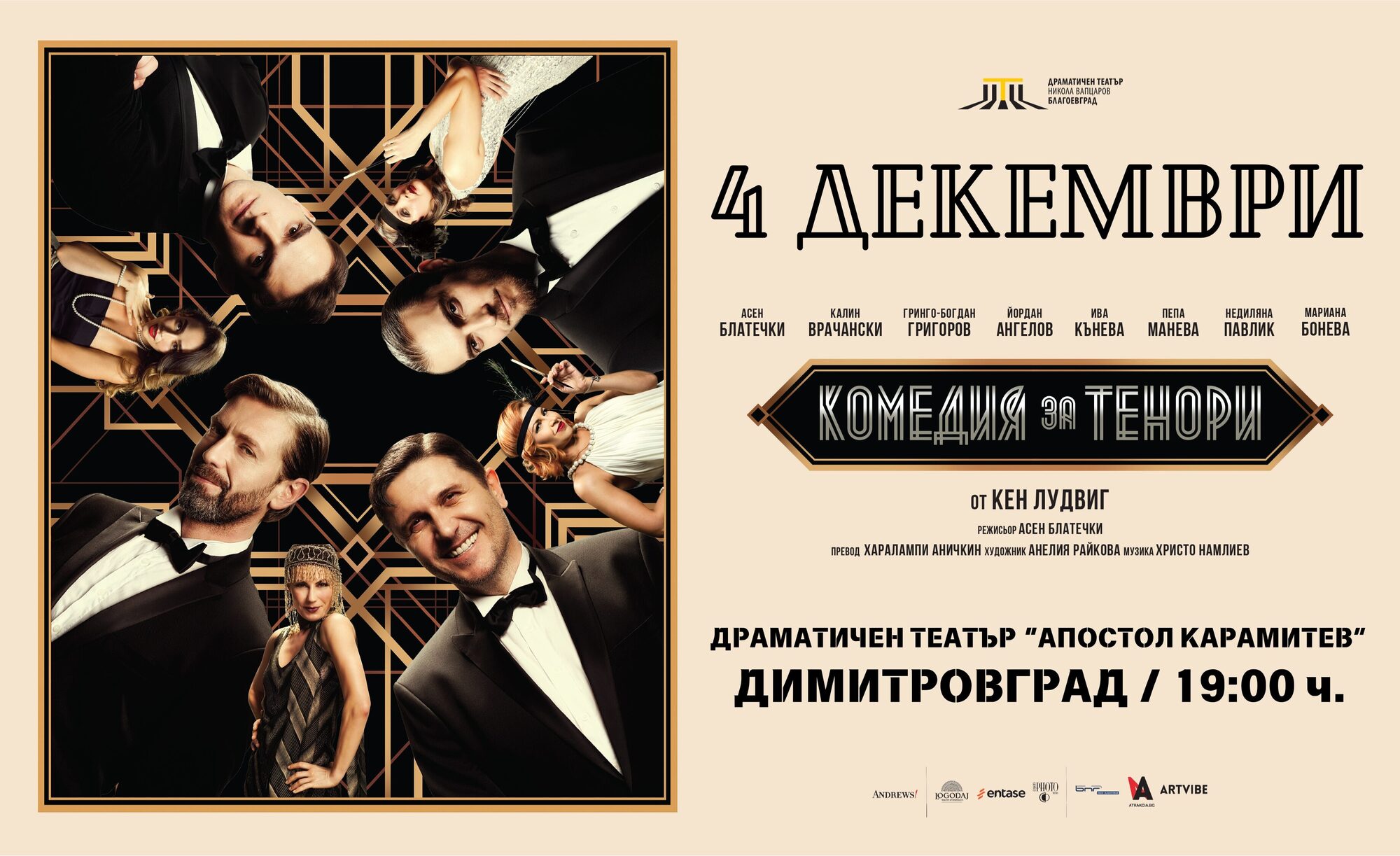 Спектакълът "Комедия за тенори" на 4 Декември в ДТ "Апостол Карамитев", Димитровград