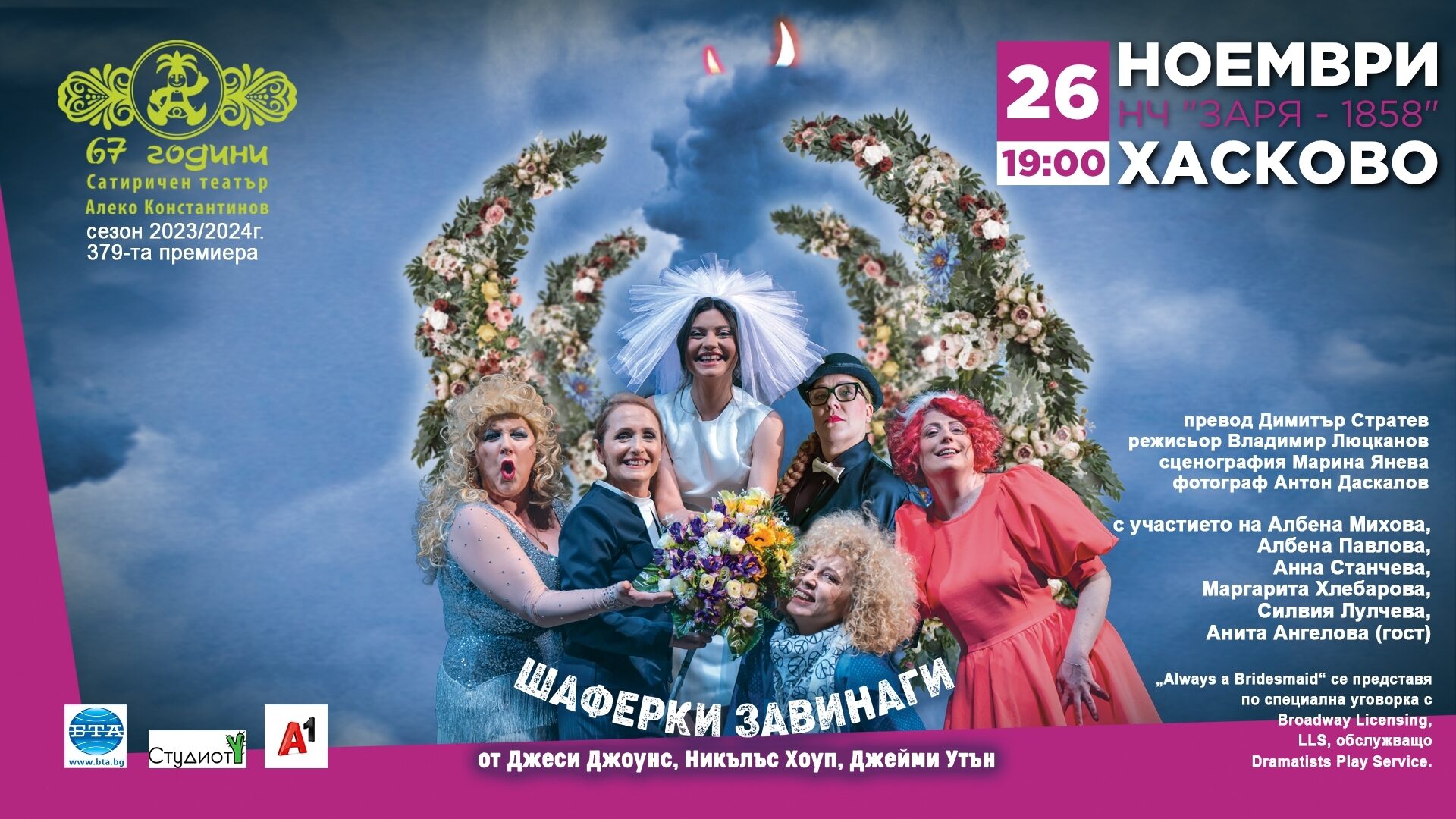 Ако искате да се насладите на ярки, запомнящи се роли, развихрено въображение, неподправено и остро чувство за хумор, гледайте новата премиера на Сатиричния театър: "Шаферки завинаги".