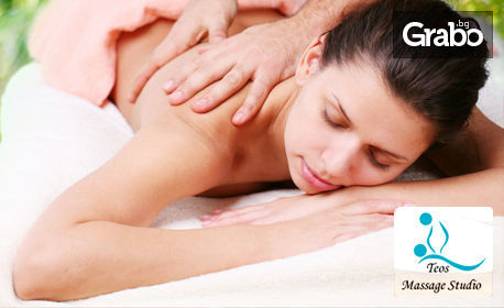 1 или 5 процедури пълно блаженство! Лечебен масаж на гръб или крака, или релаксиращ масаж на цяло тяло, от Студио Теос