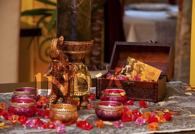 Ресторант Индия предлага чудесен интериор с колоритни картини и статуи, създаващи автентична и уютна атмосфера. В топлите сезони можете да вечеряте на открито в красивата лятна градина.