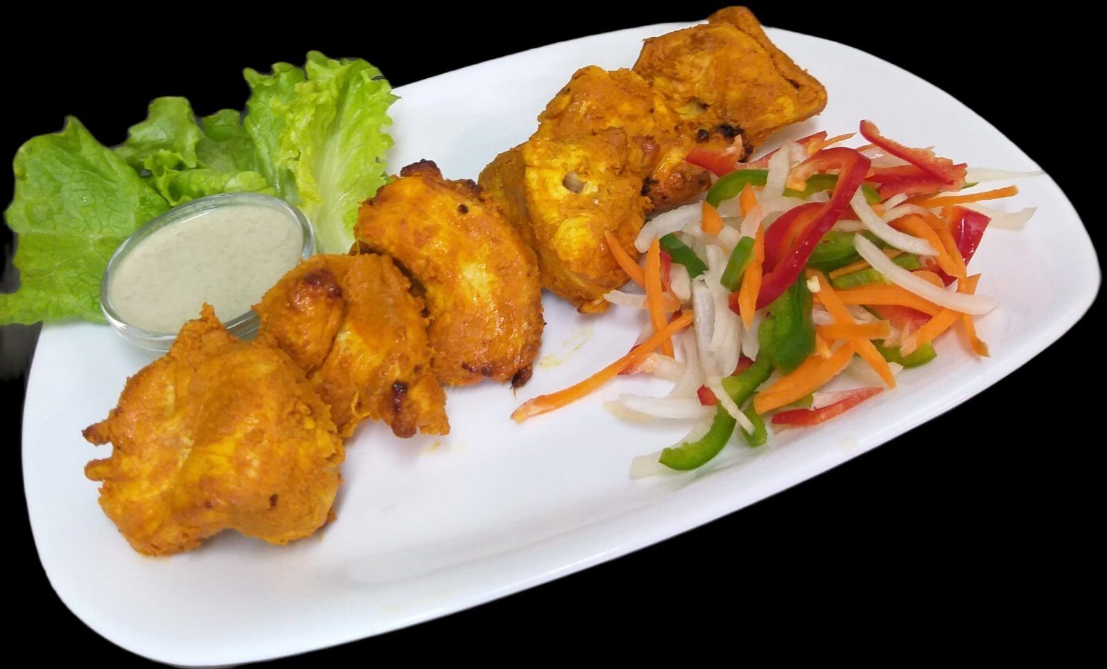 • Пиле Тика: Късчета пилешки гърди, мариновани в кисело мляко и индийски подправки, изпечени в Тандур.