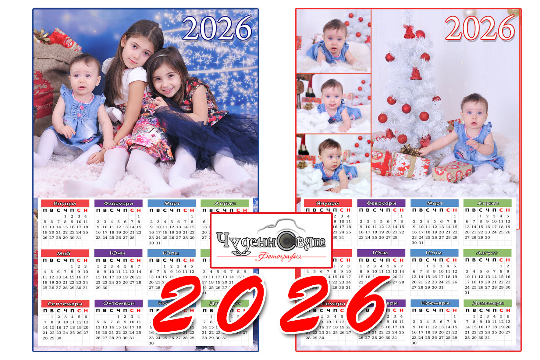 Еднолистов стенен календар за 2026-та година със снимка или фотоколаж на клиента, от Фото студио Чуденн Свят