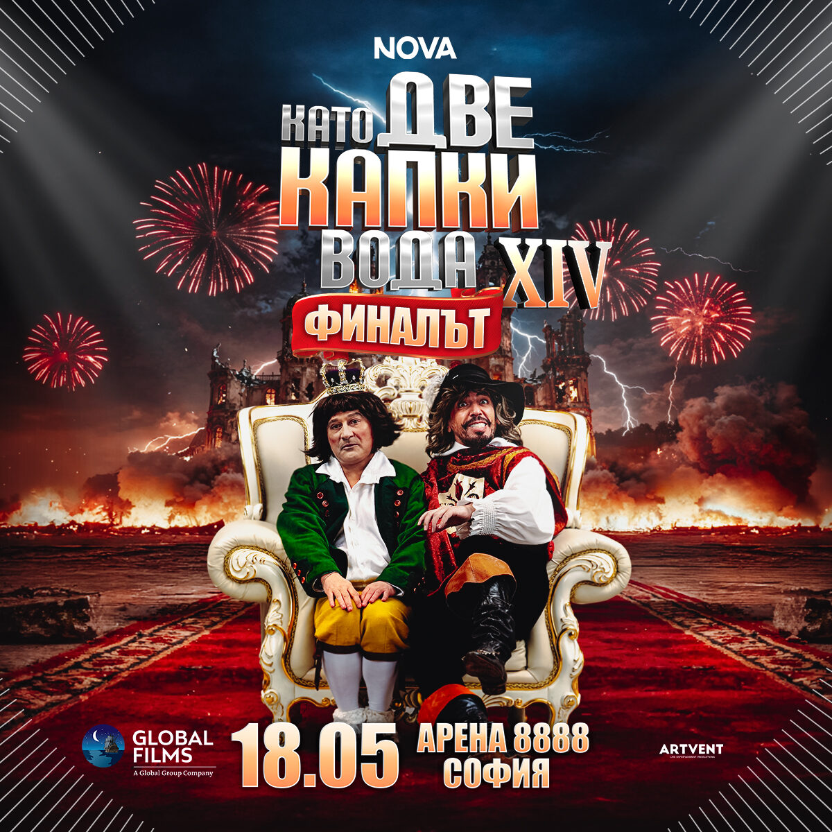Очакваме ви на 18 май в 19:00 часа в зала "Арена 8888 София", за да гледаме заедно на живо хитовото шоу на NOVA за звездни преобразявания Като две капки вода: ФИНАЛЪТ!