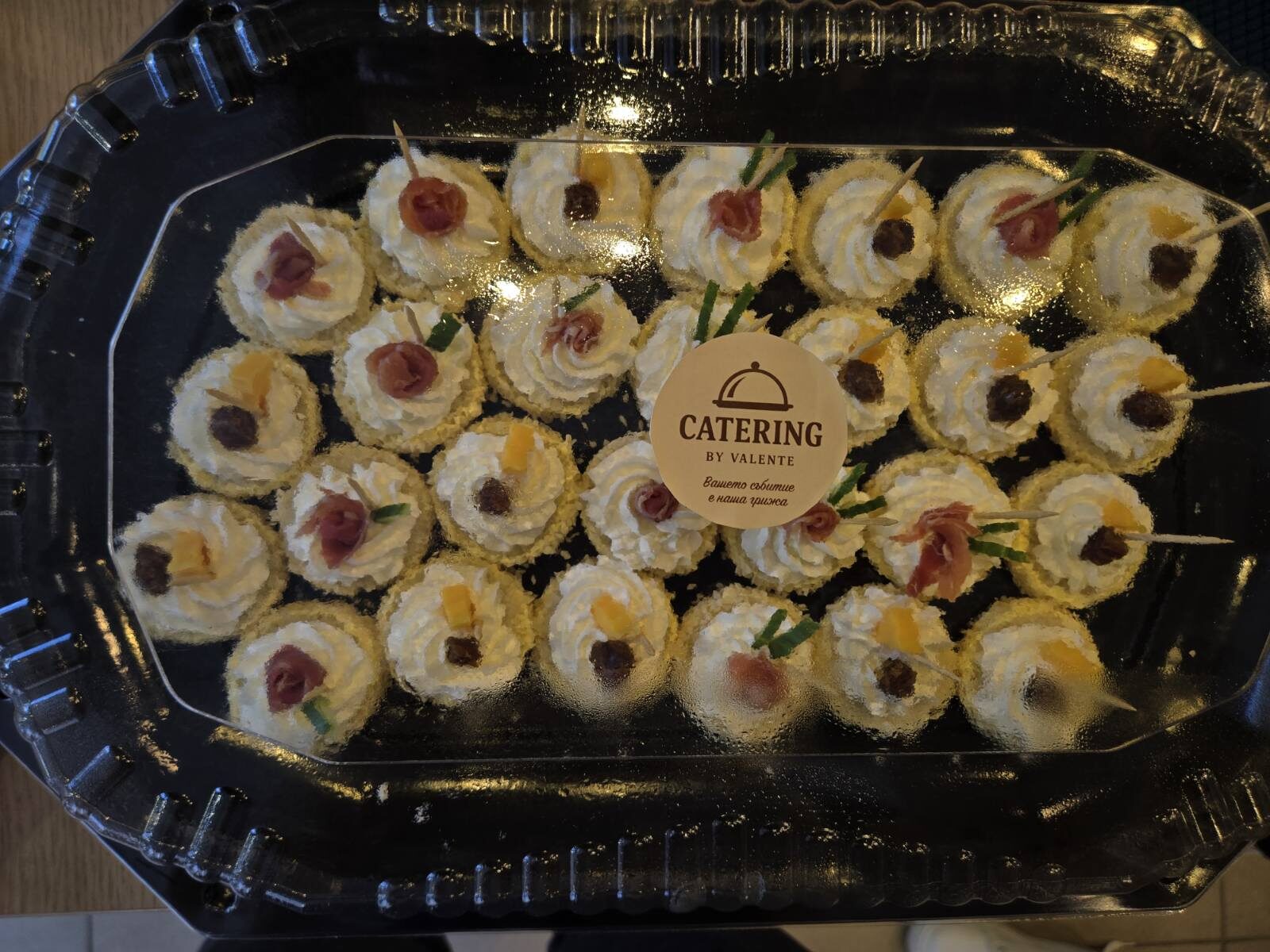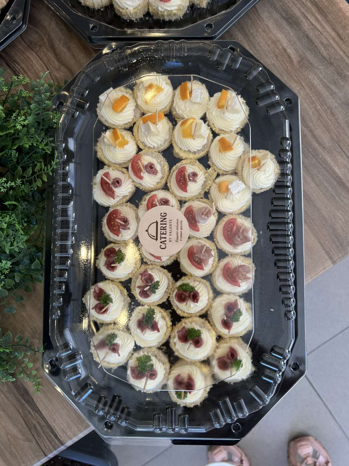 Кетъринг пакет със 100 броя солени и сладки изкушения - хапки, тарталети и палачинкови пънчета, от Valente Bar Coffee
