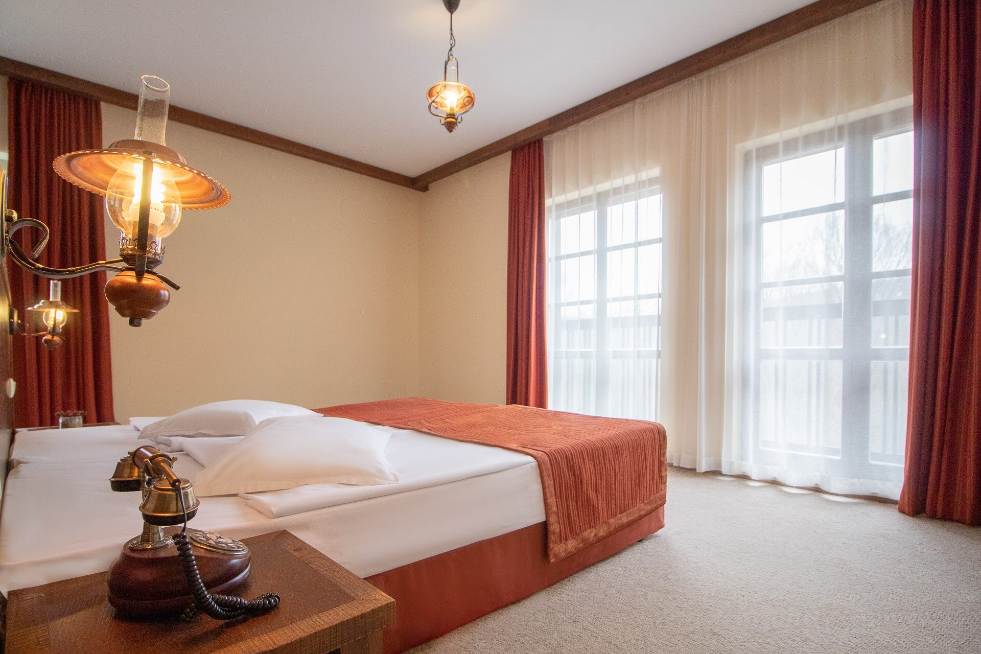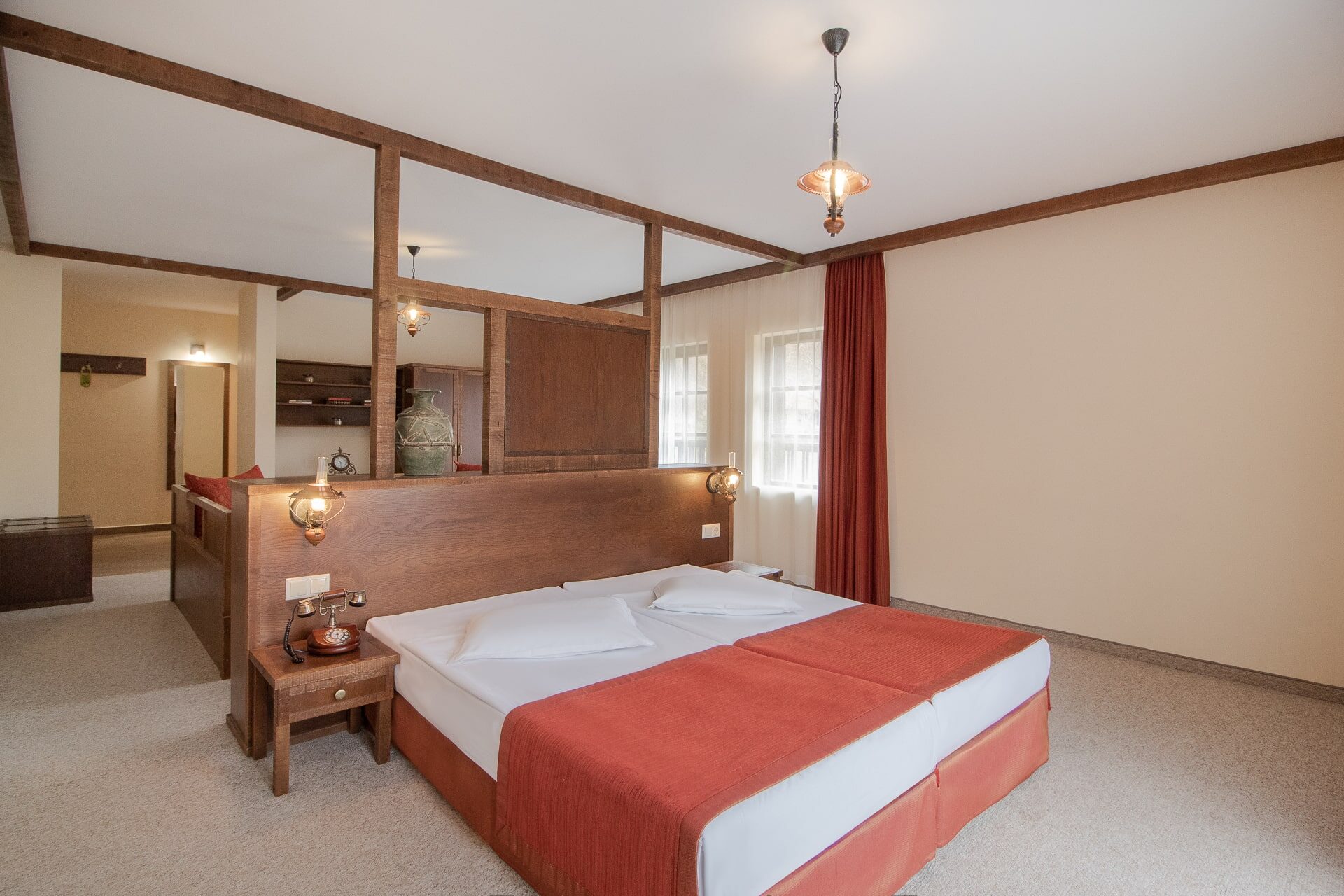 Комплексът разполага с 19 елегантни стаи от които 5 апартамента; 3 кокетни малки семейни къщи с една или две спални и хол с трапезария; 2 фамилни къщи съответно с 5 и 3 стаи, със собствена механа с камина.