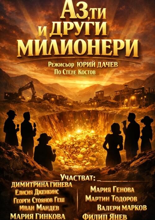 Има комедии, които не просто разсмиват - те разголват човешката природа, разобличават обществото и поставят въпроси, които са еднакво актуални преди 100 години и днес. Такава е новата постановка "Аз, ти и други милионери", създадена по класически текст на Ст. Л. Костов и режисирана с фин усет към съвремието от Юрий Дачев.