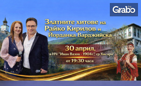 | Концерт на Райко Кирилов и Йорданка Варджийска на 30 Април от 19:30ч, в Читалище "Иван Вазов", Хисаря | 10.00 €/19.56 лв | Грабни |