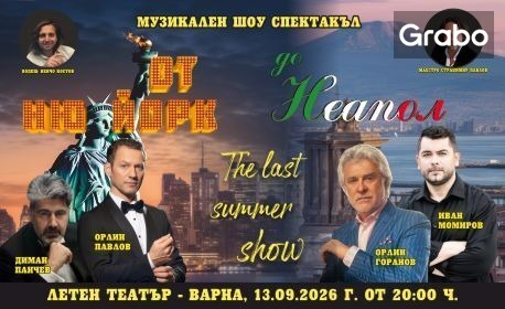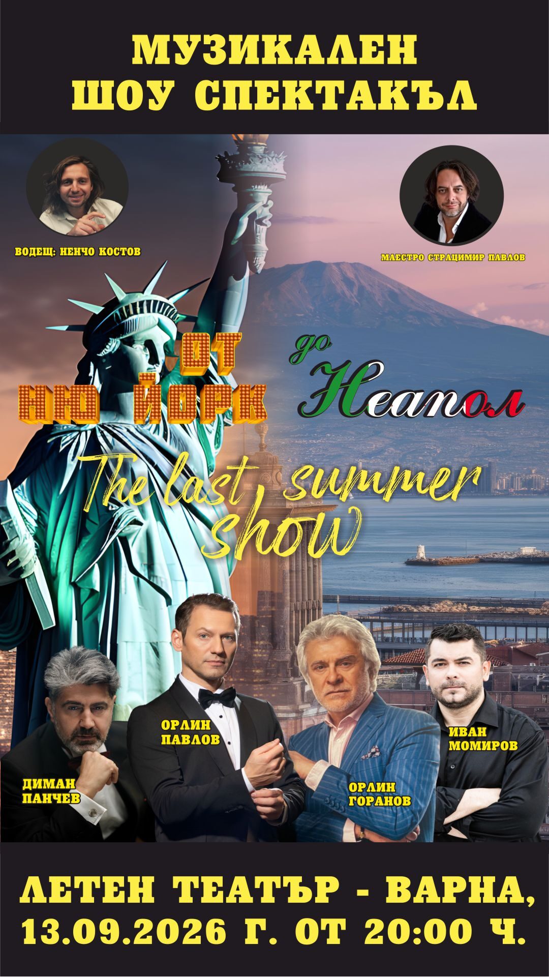 Музикалният шоу-спектакъл "От Ню Йорк до Неапол" с участието на Орлин Горанов, Орлин Павлов и други популярни изпълнители - на 13 Септември, в Летен театър - Варна