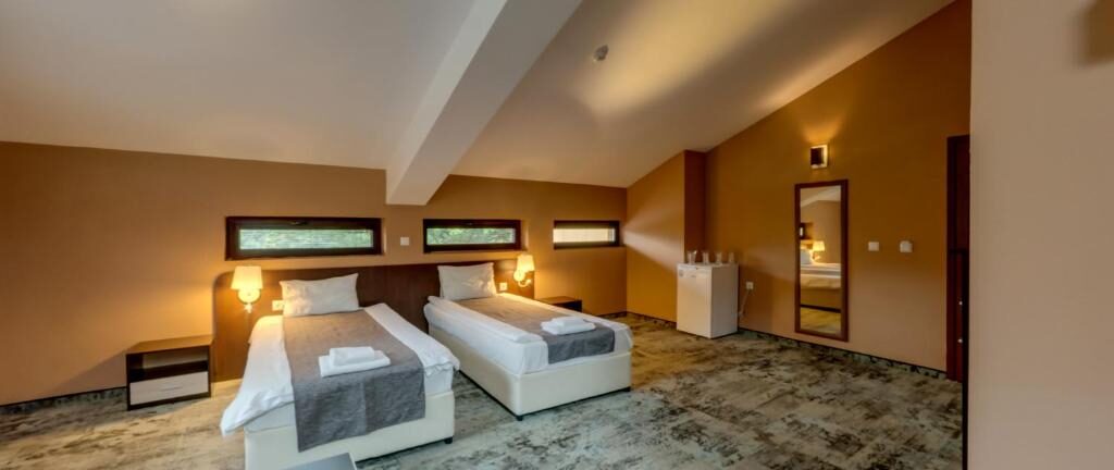 • Мансардна двойна стая с леко скосени тавани на четвърти последен етаж.