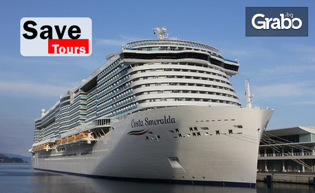Полет от София до Бергамо в 06:30ч. - 07:35ч. с АК "Wizzair". Посрещане на групата на летището от представител на фирмата. Трансфер до Генуа. По обяд кратка пешеходна разходка в Генуа - Старото пристанище, катедралата "Сан Лоренцо", в която се съхраняват мощите на Йоан Кръстител - покровителят на Генуа; Дворецът на дожите - в миналото седалище на управлението на Републиката и резиденция на дожите, в наши дни е център на социалния и културния живот в града; площад "Ферари" - сърцето на града, обграден от обществени сгради, банки и офиси на най-големите корабни компании, къщата на Христофор Колумб. Настаняване във вътрешна кабина на круизен кораб Costa Smeralda. В 14:00ч. трансфер до Савона. Отплаване от Савона в 18:00ч. Вечеря. Нощувка.