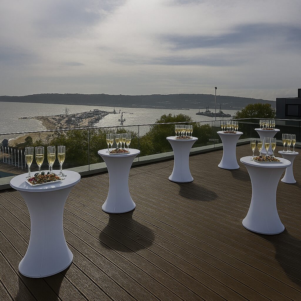 Слънцето залязва над хоризонта, вълните шепнат истории, а вие празнувате своя специален миг. Представяме ви новооткритата тераса на хотел Панорама**** с изглед към морската шир и пристанище Варна - съвършената сцена за вашето частно събитие.