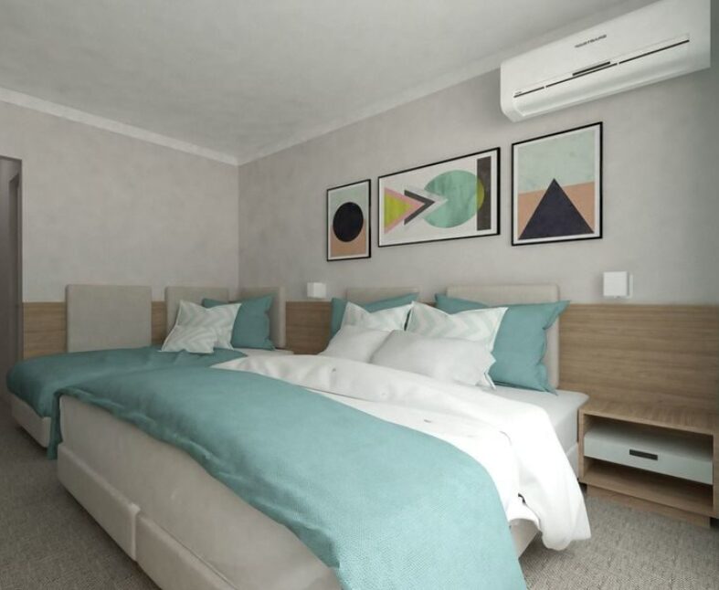 Хотелът разполага с 3 апартамента и двойни стаи с възможност за допълнително легло. Те са оборудвани с климатик, телевизор с кабелна телевизия, безжичен интернет, минбар и големи панорамни тераси.