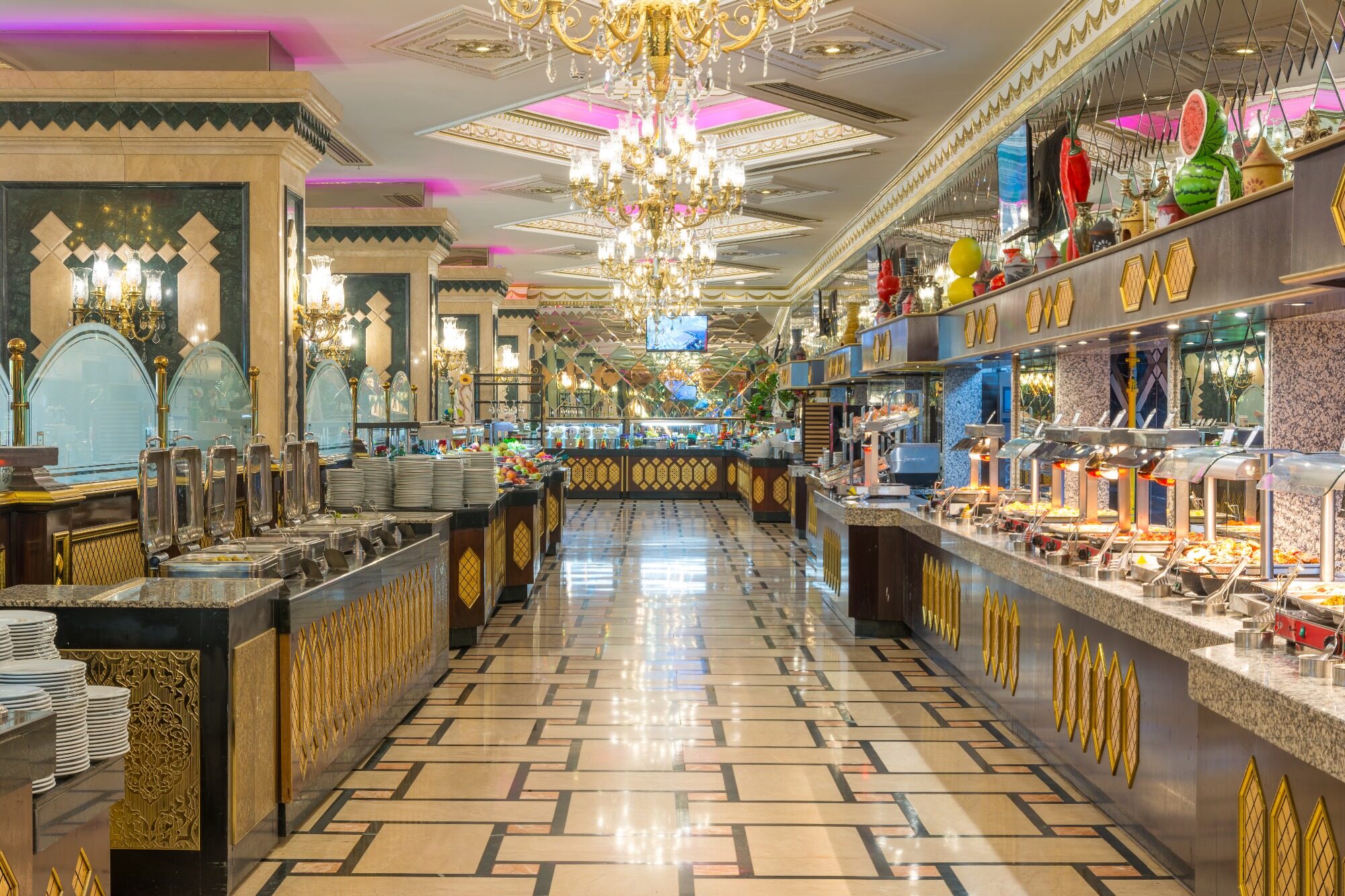 Основен ресторант, 3 ресторанта a la carte (мексикански, суши, монголски - по предварителна резервация, безплатно; всички напитки с изключение на вода), 5 бара, дискотека, 3 открити басейна, закрит басейн, 3 водни пързаялки, Спа център, магазини, фризьорски салон, лекарски кабинет, пералня, заседателна зала, 13 конферентни зали.
