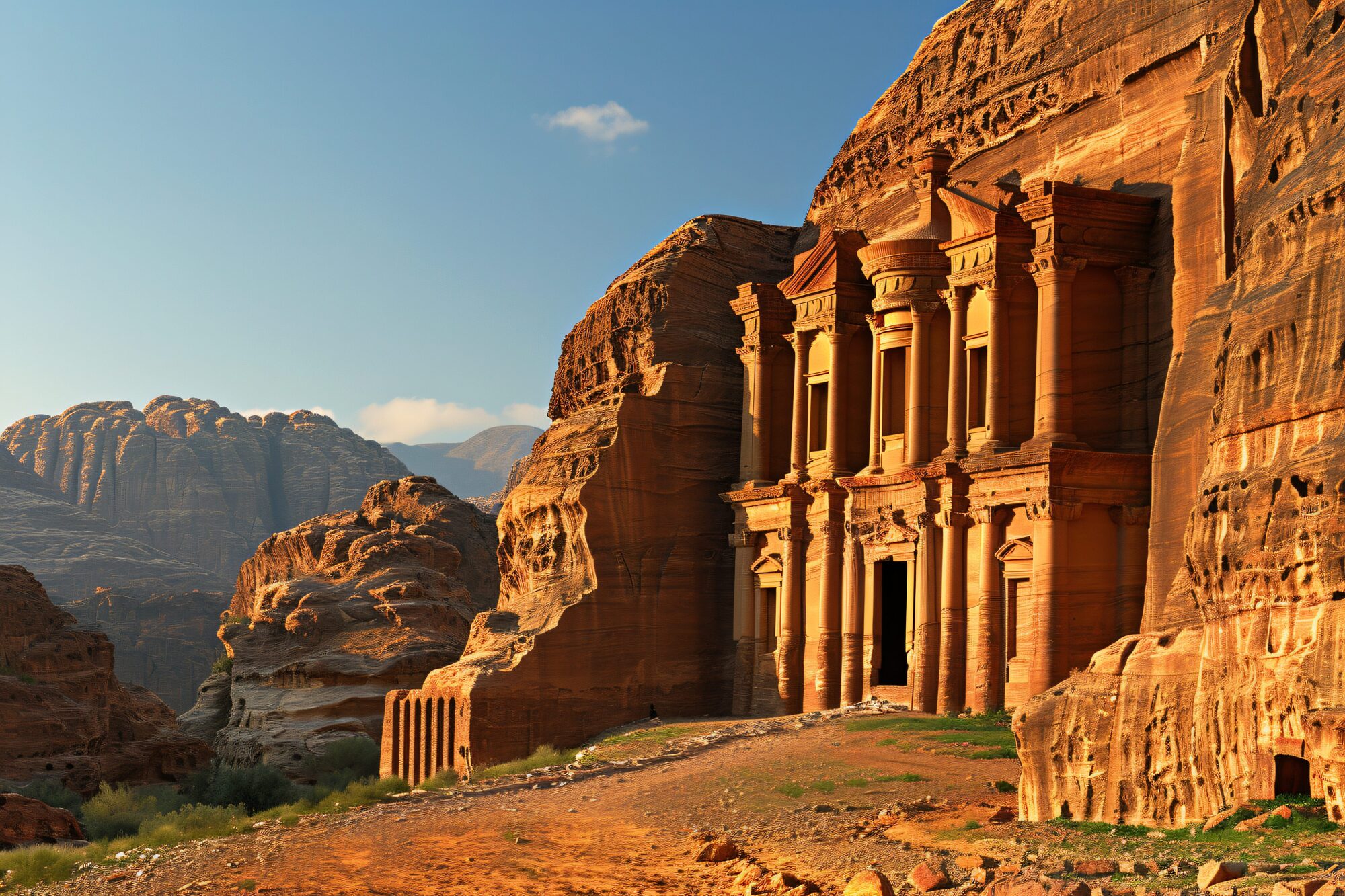 Розовочервеникавият град някога процъфтявал като важен пункт по древните търговски маршрути. Той е обграден от високи планини и е достъпен през тясно дефиле, а забележителните му изсечени в скалите сгради са запазени непокътнати - Съкровищницата (Каснех ал-Фарун), многобройните скални гробници, Амфитеатърът, Триумфалната арка и Кардото с колонадите.