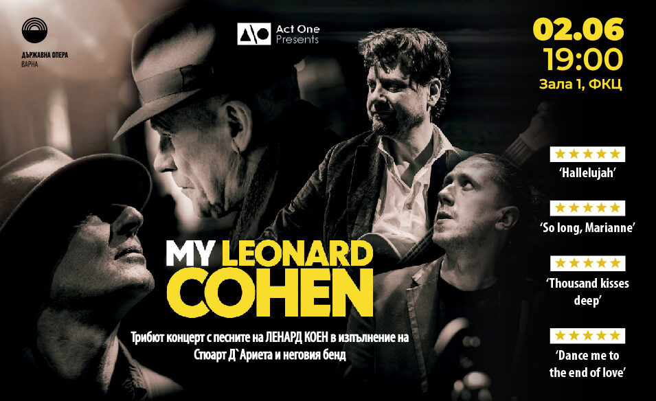 Концерт - трибют "Моят Ленард Коен" с песните на Ленард Коен в симфоничен аранжимент - на 2 Юни, в Зала 1, ФКЦ - Варна