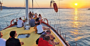 18:30 - 20:30ч - плаване в залива около Созопол и край остров Свети Иван. - Напитката е по избор между чаша бира, чаша бяло вино или безалкохолна напитка.
