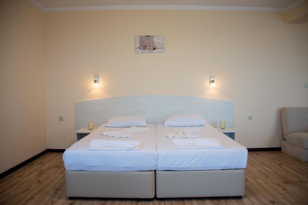 Леглата в двойната стая могат да бъдат събрани като спална, както и разтегателно диванче/фотьойл, като с предварителна заявка може да се осигури разтегателно легло или кошара.