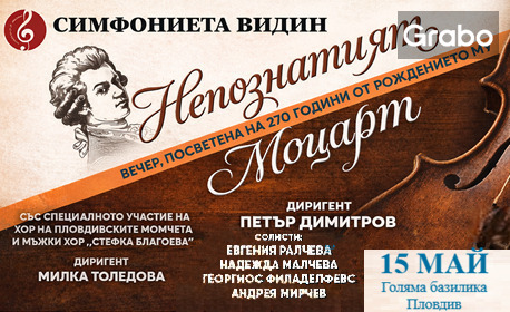 | Концертът "Непознатият Моцарт" на 15 Май от 19:00ч, в Епископска базилика на Филипопол, Пловдив | 12.00 €/23.47 лв | Грабни |