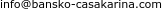- С предварителна резервация на: 088 45* **** (покажи) (Понеделник - Събота: 09:00 - 18:00ч) или на e-mail: info@bansko-casakarina.com.