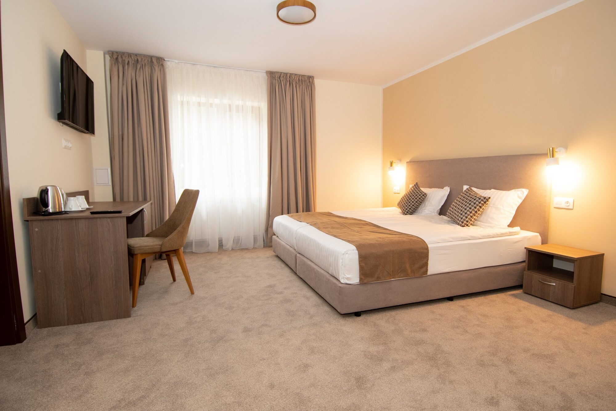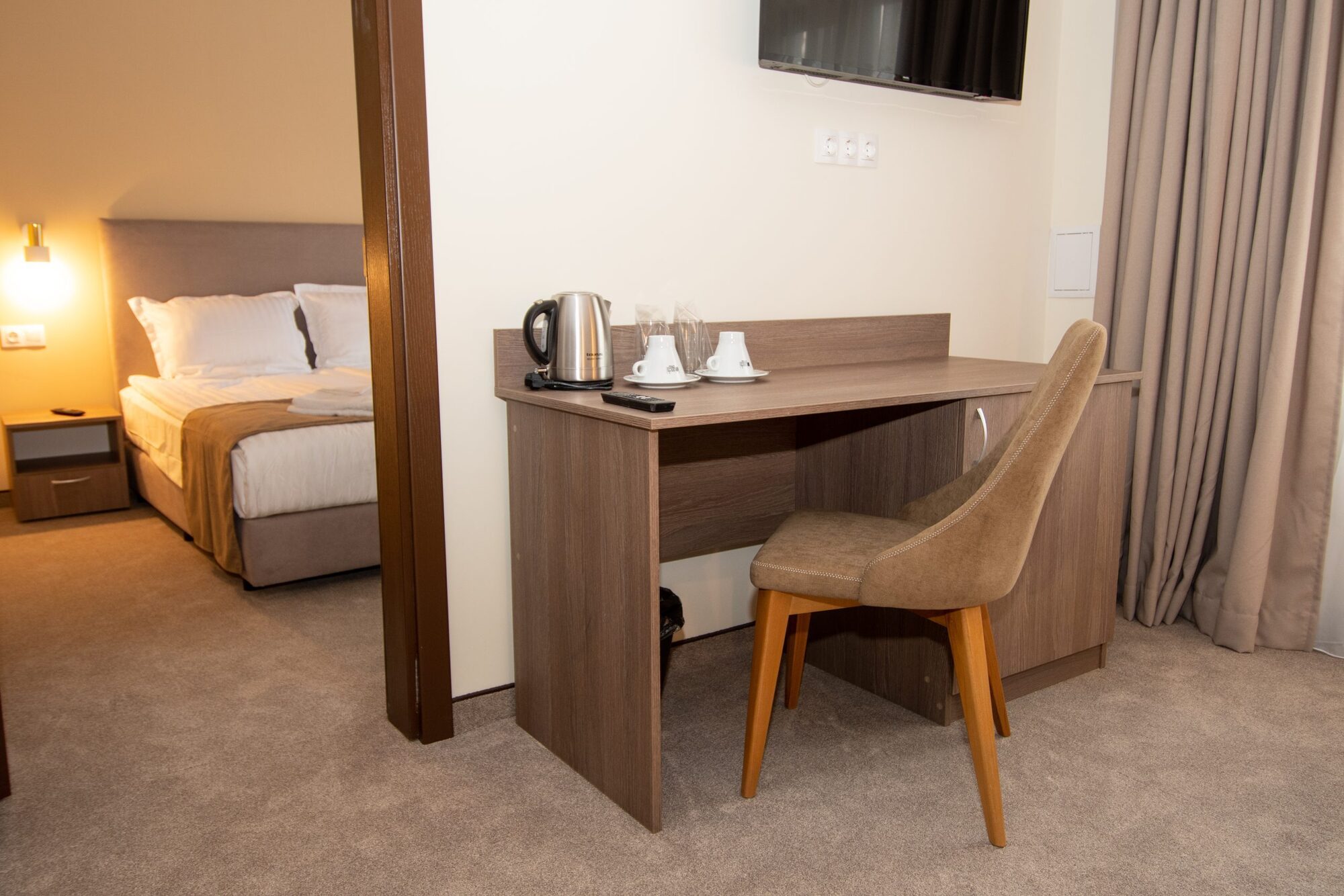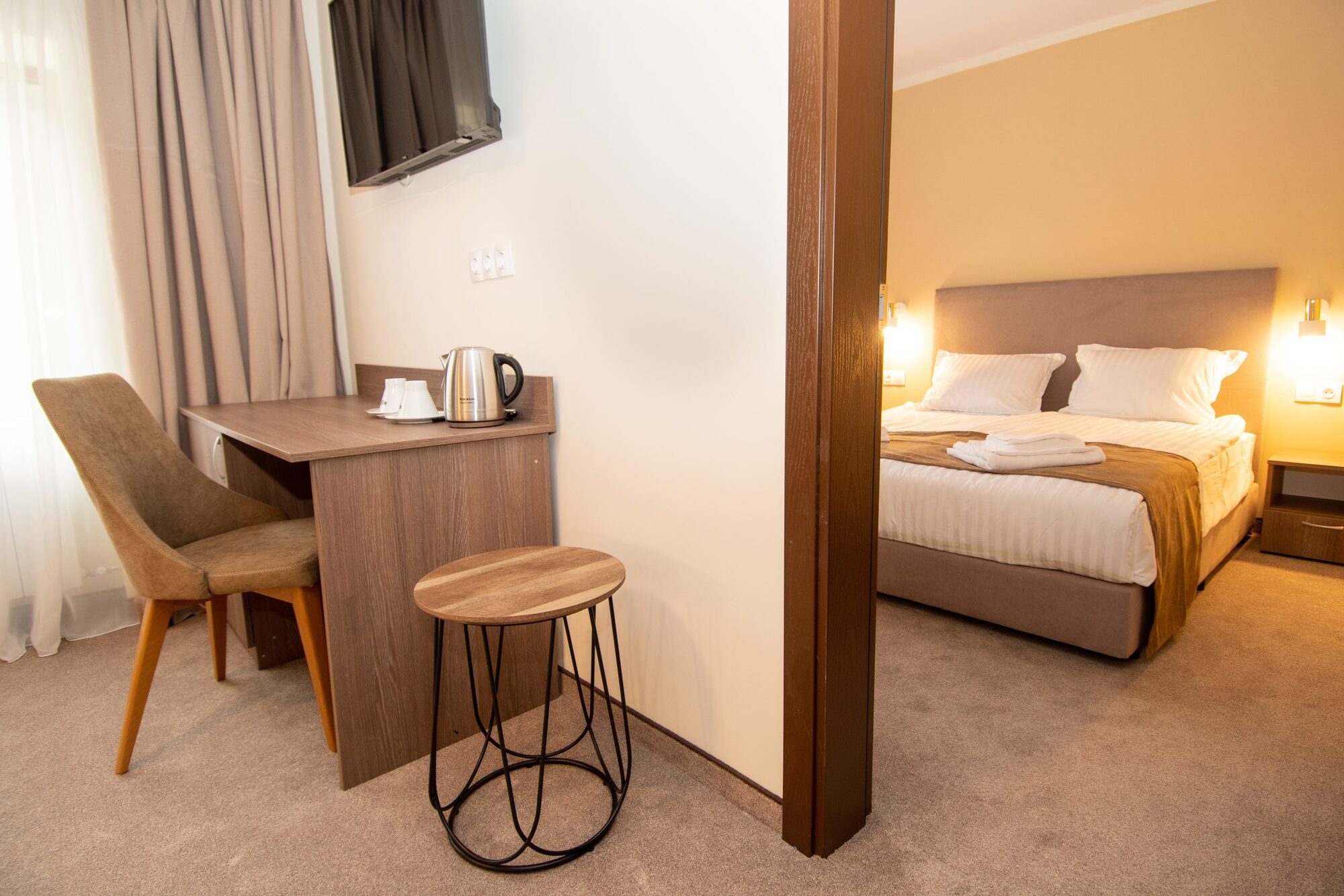 Едноспалните апартаменти (35 - 38 кв.м) се състоят от две помещения, като едното разполага с комфортна спалня и кът за сядане (разтегателен диван), а другото със спалня. Апартаментът разполага с една баня с тоалетна. Оборудване: телевизор с плосък екран (във всяка от стаите), писалище, гардероб, диван с холна маса, разтегателен диван), малък хладилник, централно отопление, кана за приготвяне на кафе и чай, сейф, Wi Fi. Баня: баня с параван, безплатни тоалетни принадлежности, сешоар, хавлиени кърпи.