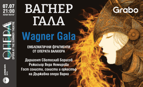 "Вагнер гала" представя величието на музиката на Рихард Вагнер с подбрани сцени от операта "Валкюра". Под диригентството на Светослав Борисов оркестърът на Държавна опера Варна ще изпълни Летния театър с могъщите тембри и драматичния размах на Вагнеровата партитура.