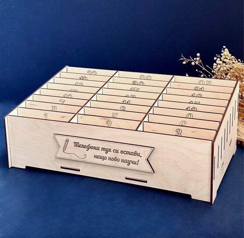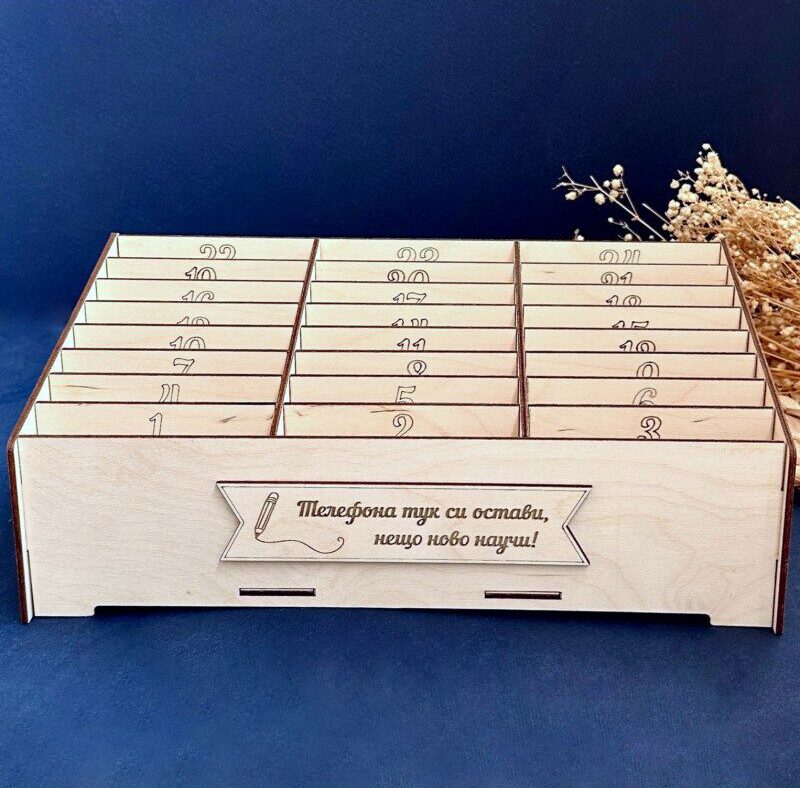 Ако търсите надежден начин да въведете ред и организация в учебна или работна среда, този дървен органайзер за телефони е перфектното решение.