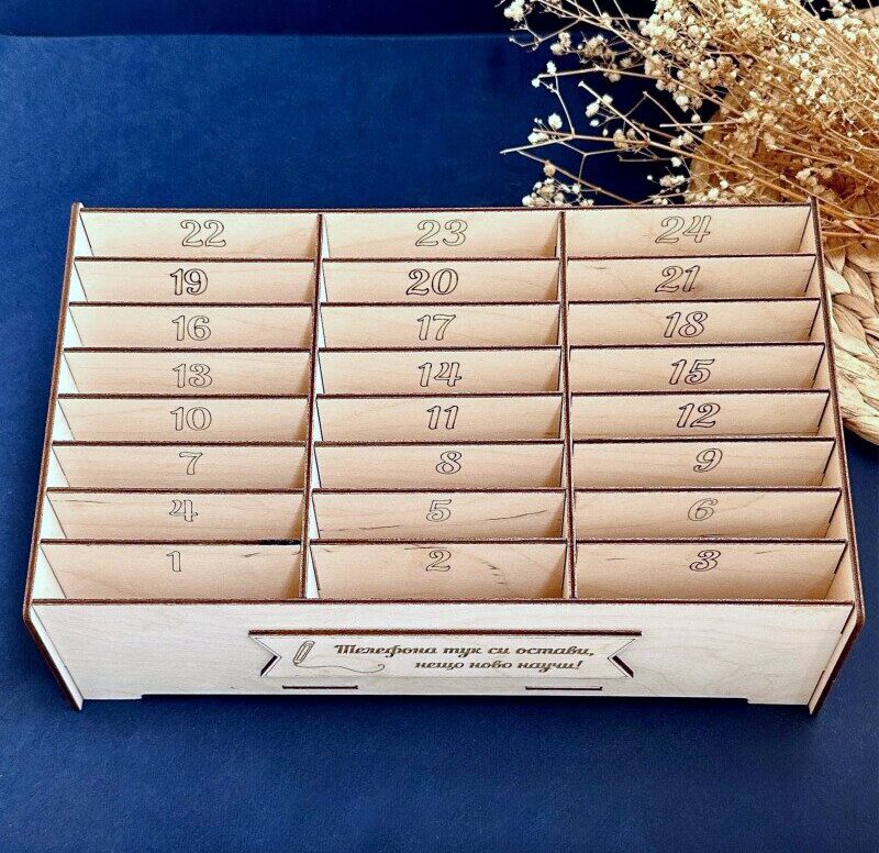 С прецизна лазерна гравюра и стабилна конструкция, кутията е не само функционална, но и стилна част от интериора. Благодарение на компактния си размер, органайзерът е удобен за поставяне върху бюро или катедра.